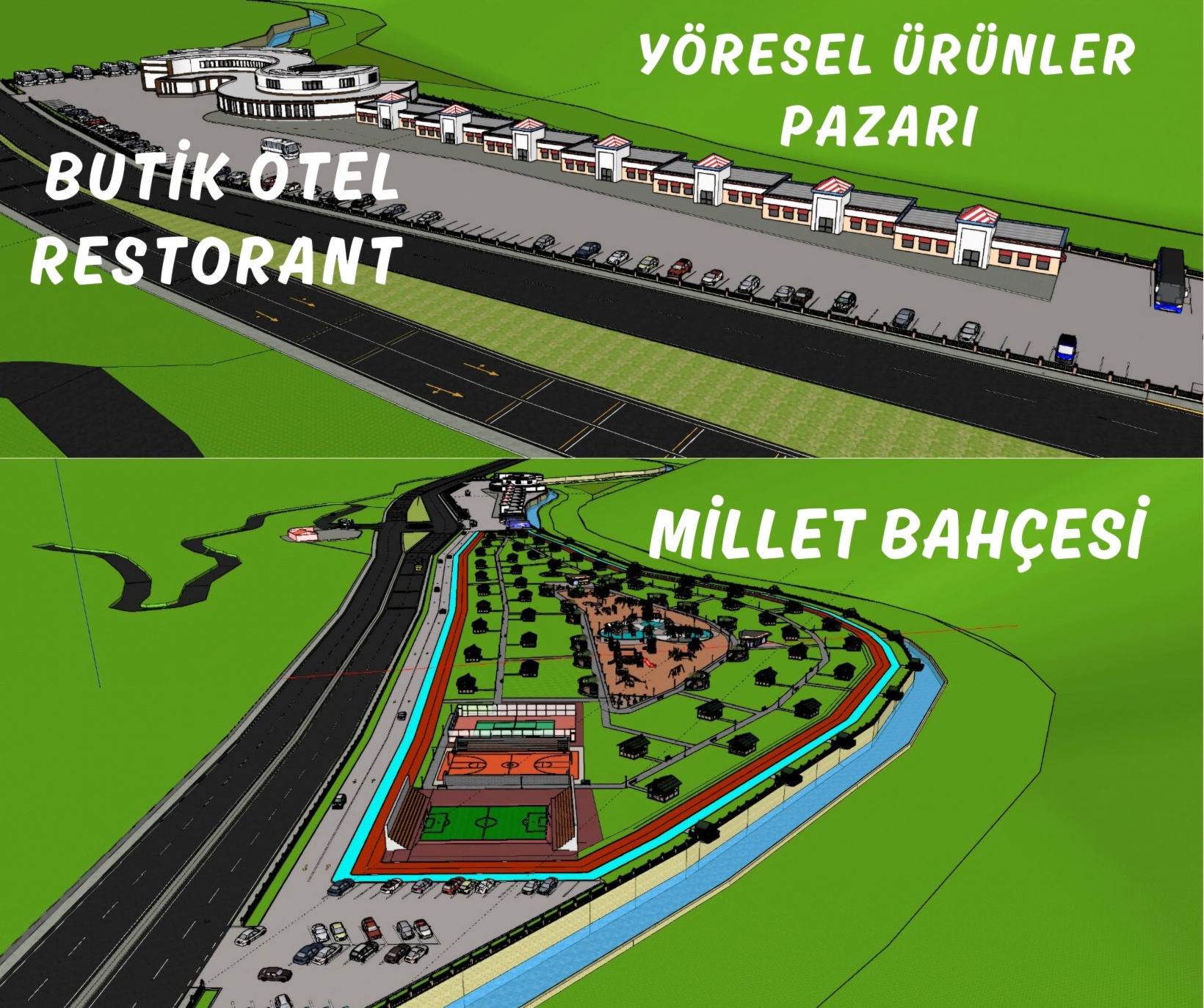 Şiranlı Mimar Miraç Celal Karabıçak’a avam proje çalışma yaptırdıklarını belirten Demirağ, “Çok kıymetli Mimar kardeşimiz kentimize hizmet etmek adına bu krokiyi bilabedel çizerek bu büyük projenin küçük bir canlandırmasını gözlerimizin önüne serdi. Bu devasa alanda kentimiz ve vatandaşlarımız için hayal ettiğimiz projenin büyük bir alanını kaplayan kısmında kentimizin sosyal hayatına katkı sağlayacak olan ve içinde spor alanları, piknik alanları, yürüyüş ve bisiklet yolları, kafeterya, tiyatro, sinema, botanik park gibi özellikleri olan çok fonksiyonlu bir millet bahçesi; kentimizin ekonomisine ve turizmine katkı sağlayacak olan yöresel ürünler alışveriş merkezi, butik otel ve restoranın bir arada olduğu ticari kompleks ile birlikte, Karaca Mağarasına ve krom vadisindeki turizm merkezlerine ziyarete gelen tur otobüslerinin bu alanda park edilerek bu güzergahlara turistleri taşıyacak olan dolmuş hatlarının park alanlarının olduğu büyük bir otopark alanını kapsamaktadır” dedi.
