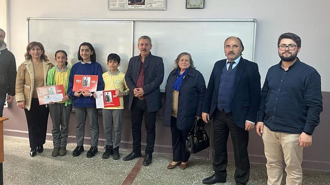 Ortaokul öğrencileri arasında düzenlenen “Atatürk ve öğretmen” konulu şiir yarışmasında dereceye giren 5 öğrenciye ödülleri verildi.