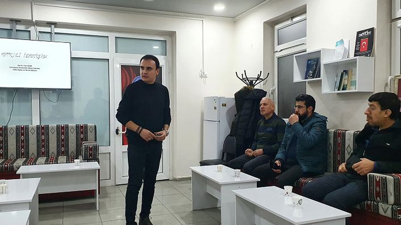 Özel İdare İş Merkezindeki TÜRKAV salonunda gerçekleştirilen mesleki ve kişisel gelişim eğitim seminerine konuşmacı olarak Gümüşhane Üniversitesi İletişim Fakültesi Dekan Yardımcısı Doç.Dr. Ersin Diker katıldı.