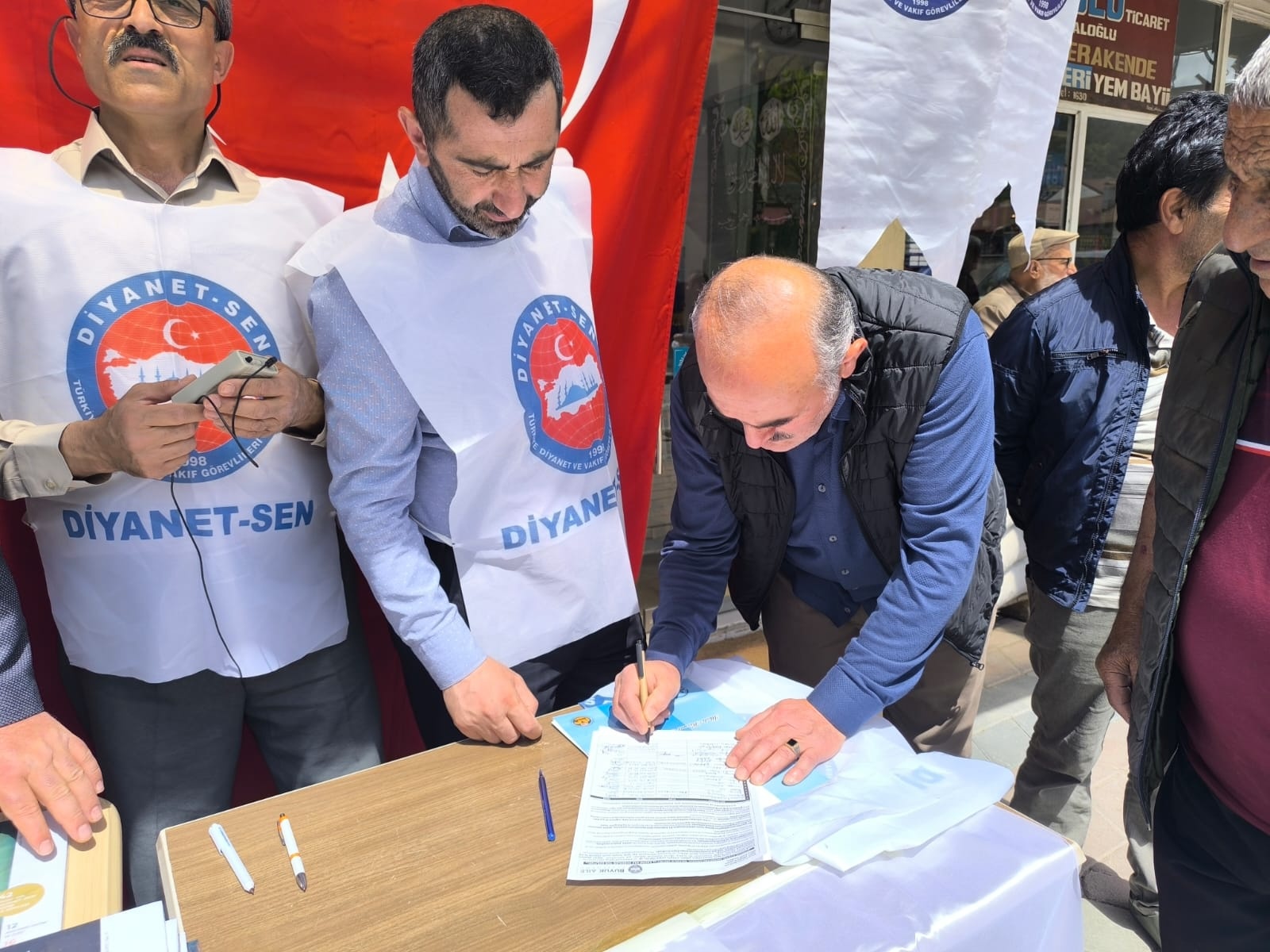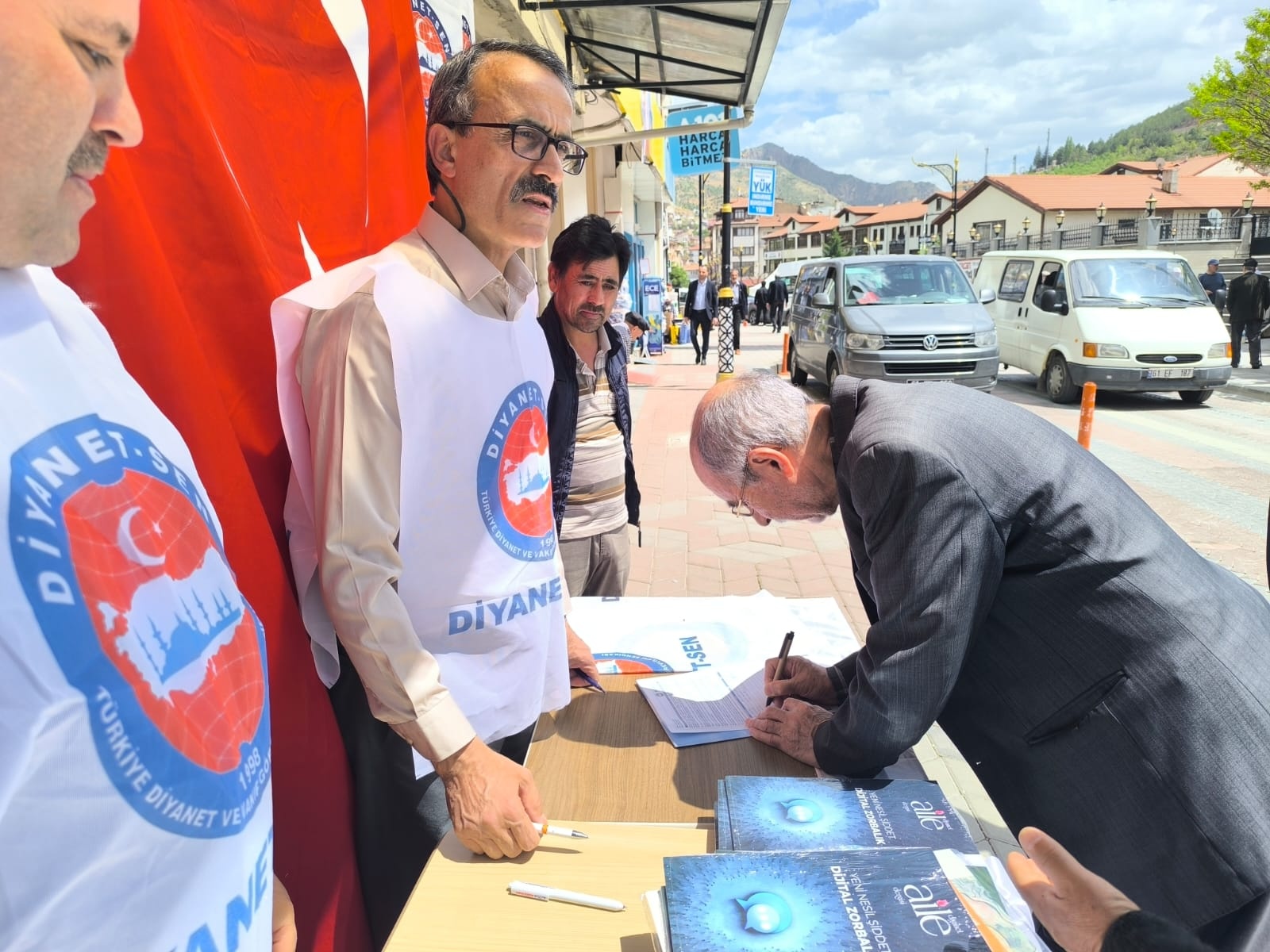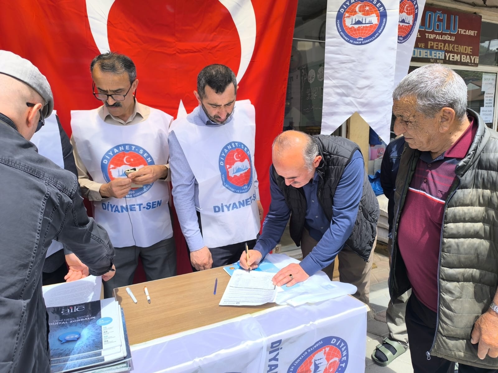 Burada bir açıklama yapan Diyanet-Sen İl Temsilcisi Mehmet Karabulut, sendika olarak 2025 aile eylem planı çerçevesinde, panel, kitlesel basın açıklamaları, imza kampanyaları yapacaklarını hatırlatarak, bu çerçevede Büyük Aile Platformunun başlattığı imza kampanyasına destek vermek amacıyla 81 ilde imza kampanyası düzenlediklerini söyledi.