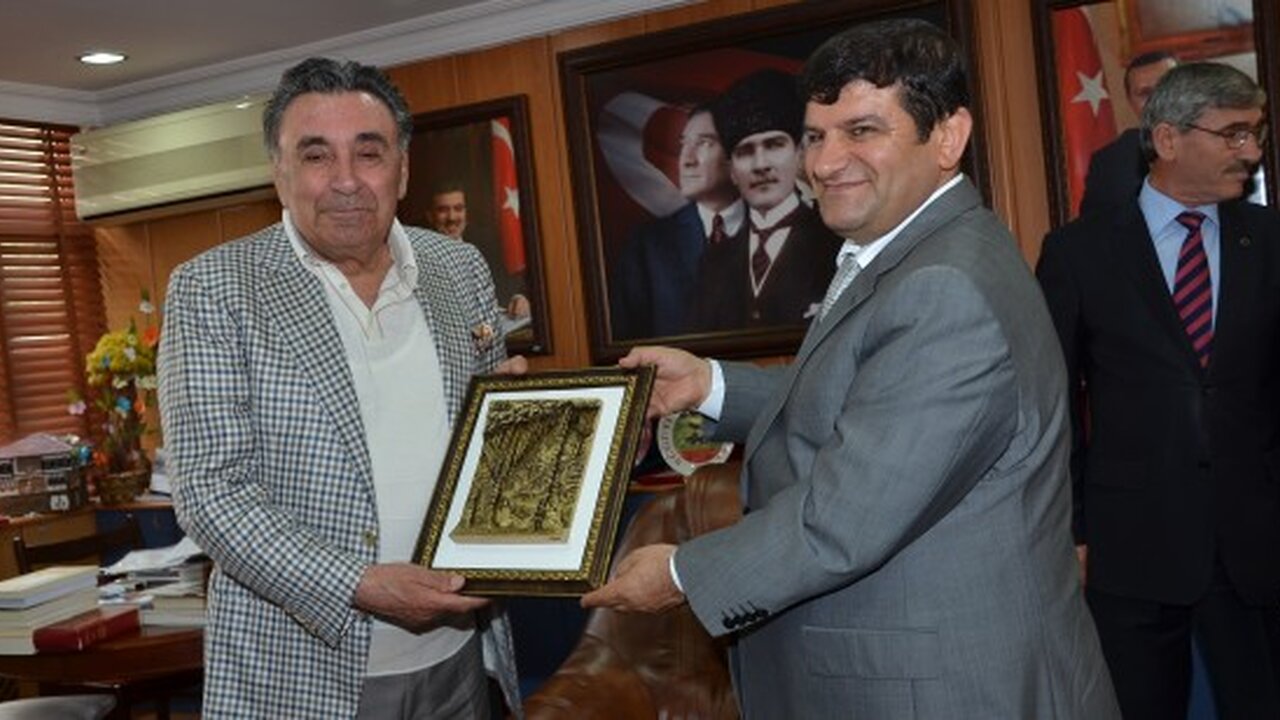 Ziyaretin ardından Vali Mayda tarafından Aydın Doğan’a karaca mağarası rölyefi hediye edildi.