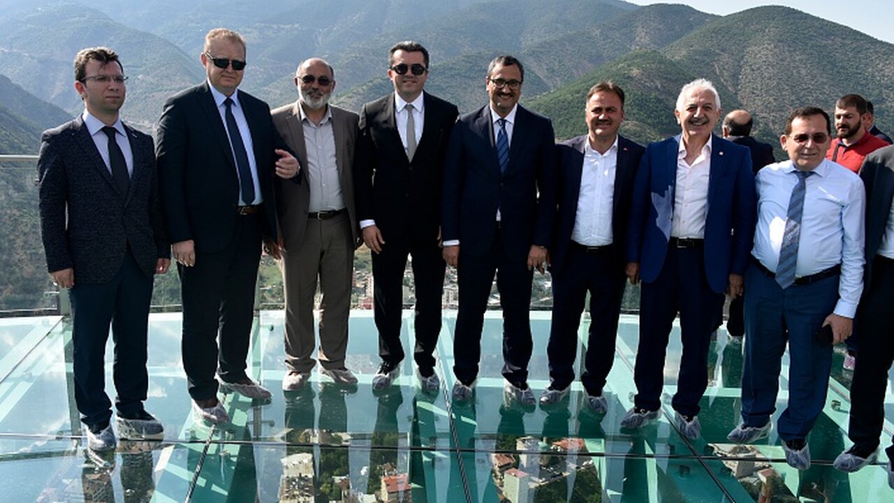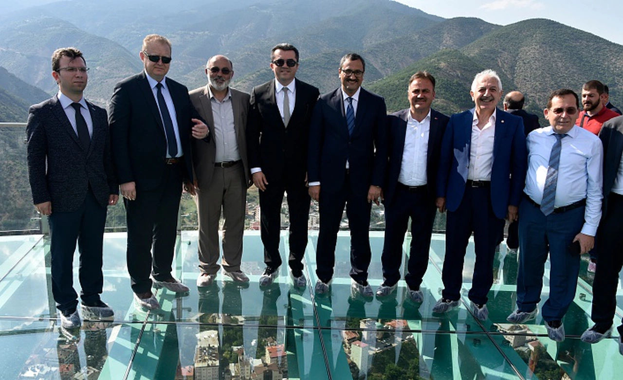 Zaman darlığı nedeniyle programda olmasına rağmen dünyaca ünlü damlataşı mağarası Karaca Mağarasına gidemeyen heyet son olarak Torul Kalesinde yapılan ve 240 metrelik irtifasıyla Türkiye’nin en yüksek ve en ulaşılabilir durumdaki cam seyir teraslarından birisi olan Torul Kalesi Cam Seyir terasında incelemelerde bulundu.