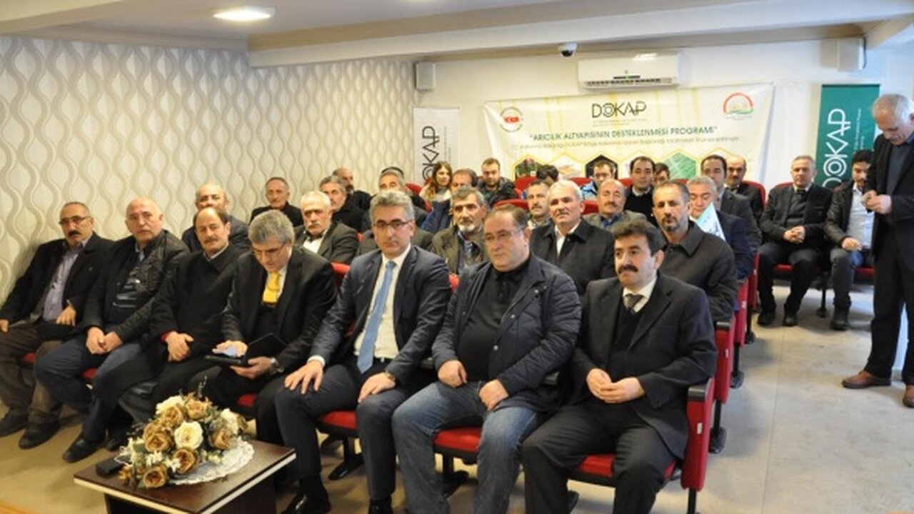 Gıda, Tarım ve Hayvancılık İl Müdürlüğü Toplantı Salonu'nda düzenlenen törene DOKAP Başkanı Ekrem Yüce, Gıda, Tarım ve Hayvancılık İl Müdürü Edip Birşen, Şube Müdürü Necati Ceyhan, Arı Yetiştiriciler Birliği Başkanı Niyazi Gül ve arıcılar katıldı.