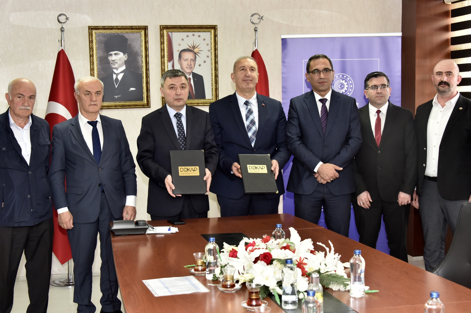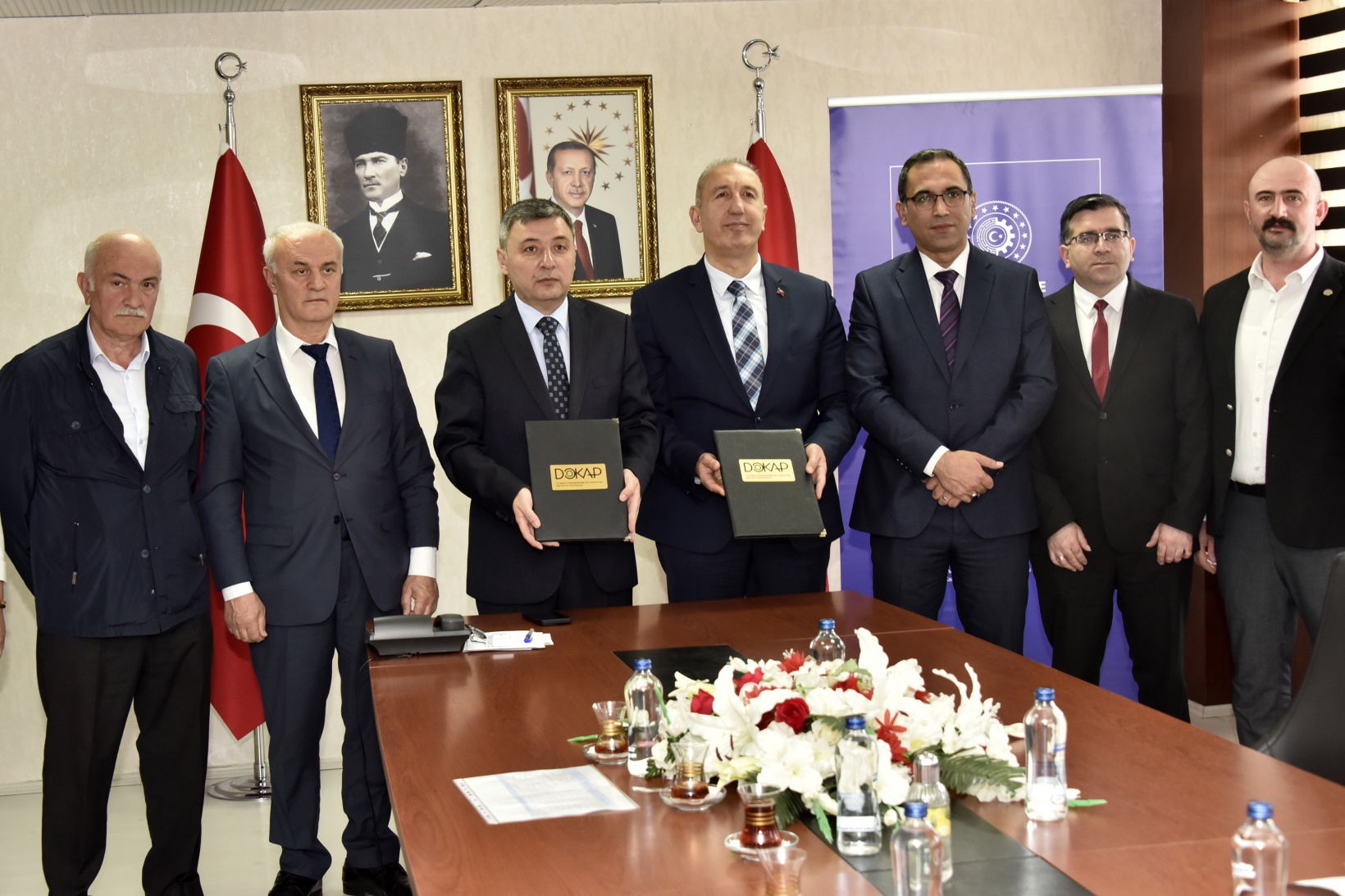 DOKAP Başkanı Hakan Gültekin ve beraberindeki heyet Vali Alper Tanrısever’i ziyaret ederek bu yıl İl Özel İdaresi ve Tarım ve Orman İl Müdürlüğü aracılığıyla desteklenecek projelerin sözleşmelerine imza attı.