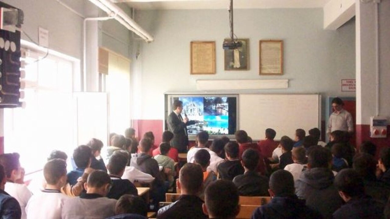 Mesleki ve Teknik Anadolu Lisesi’nde yapılan etkinlikte Bilim, Sanayi ve Teknoloji İl Müdürü Hakan Topaç, öğretmenler ve öğrencilere meteoroloji ile karıştırılan metroloji kavramı ile önemi hakkında bir sunum gerçekleştirdi.