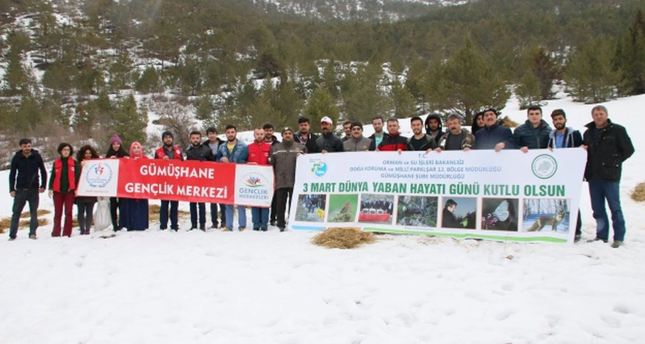 Gümüşhane’de 3 Mart Dünya Yaban Hayatı Günü, Doğa Koruma ve Milli Parklar (DKMP) Gümüşhane Şube Müdürlüğü tarafından düzenlenen geniş katılımlı yaban hayatı yemleme etkinliğiyle kutlandı.