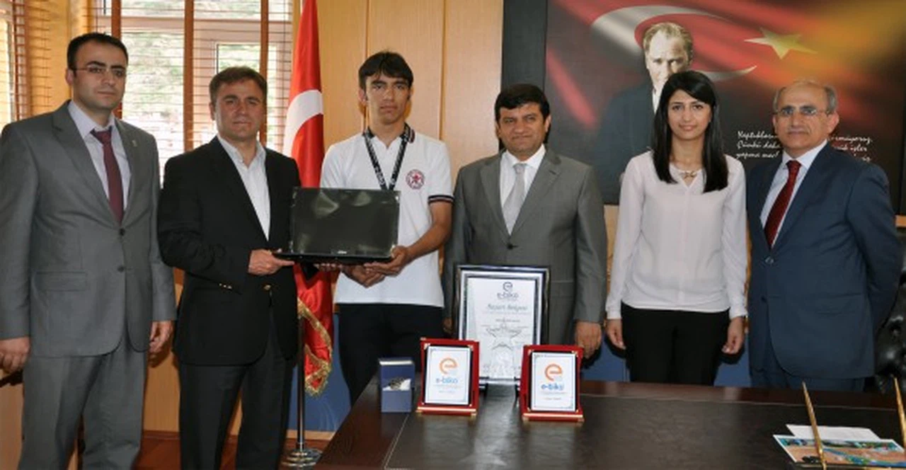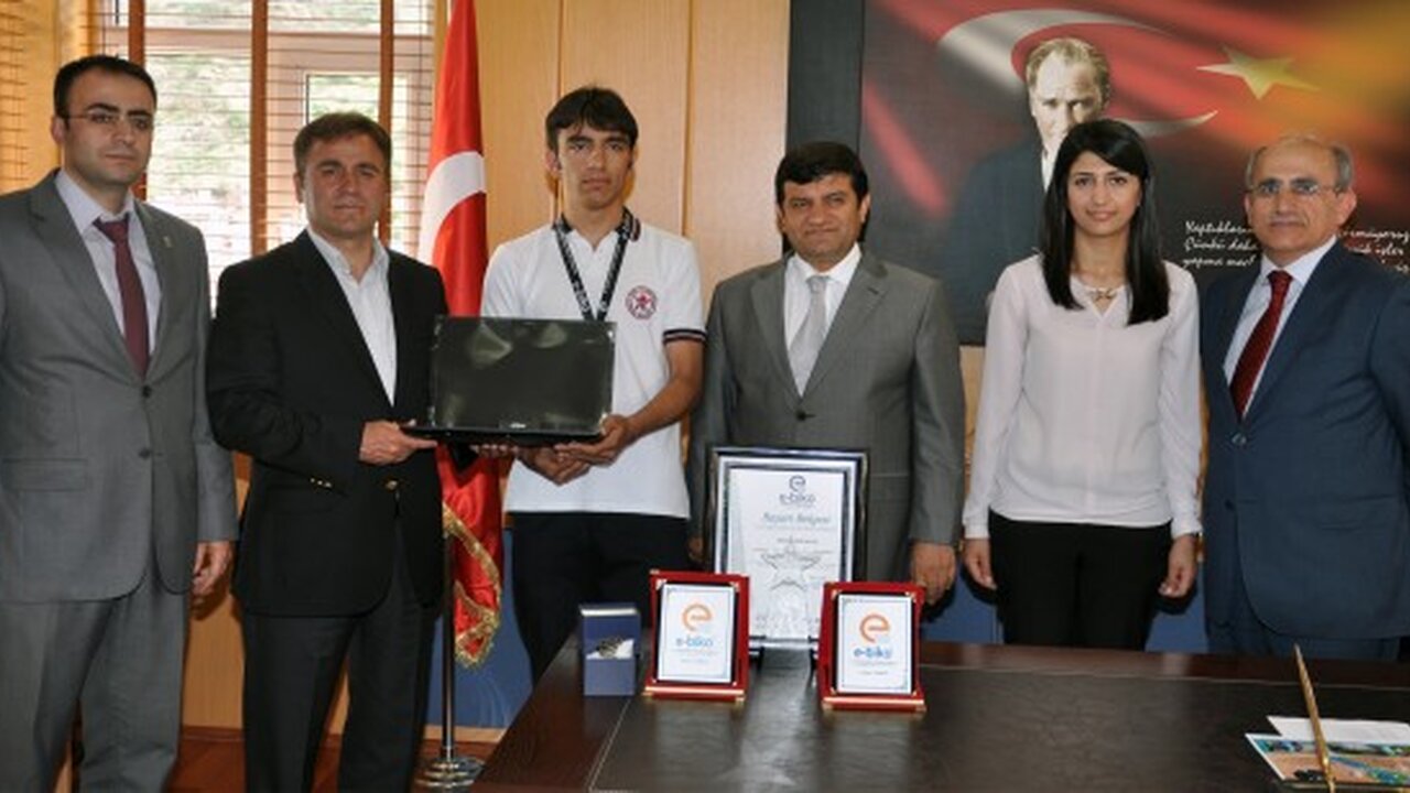 Vali Dr. Yusuf Mayda’ya proje hakkında bilgi veren Teknik ve Endüstri Meslek Lisesi Müdürü Şakir Marancı ise “E-BİKO Uluslararası Bilişim Olimpiyatları Avrupa Birliğine üye ülkelerle birlikte, ABD, Brezilya, Tunus, Kenya, Gabon, Türkmenistan, Hindistan gibi dünyanın dört bir tarafından katılan projeleri genel olarak bilişim kültürü oluşturma, yaygınlaştırma ve içselleştirmeyi hedefleyen ve ortaöğretim öğrencilerinin farkındalık duygularının geliştirmeyi, iyi bir teknoloji okur-yazarı olmasının yanında bu kültürü yaşayan ve yaşatan bireyler olmalarını amaçlamaktadır. Finalde birinciliği alan okulumuz proje danışmanı Özlem Özsoy ile Projeyi uygulayan öğrencimiz Abdurrahim Aslan’ın katkıları yadsınamaz.” diye konuştu.