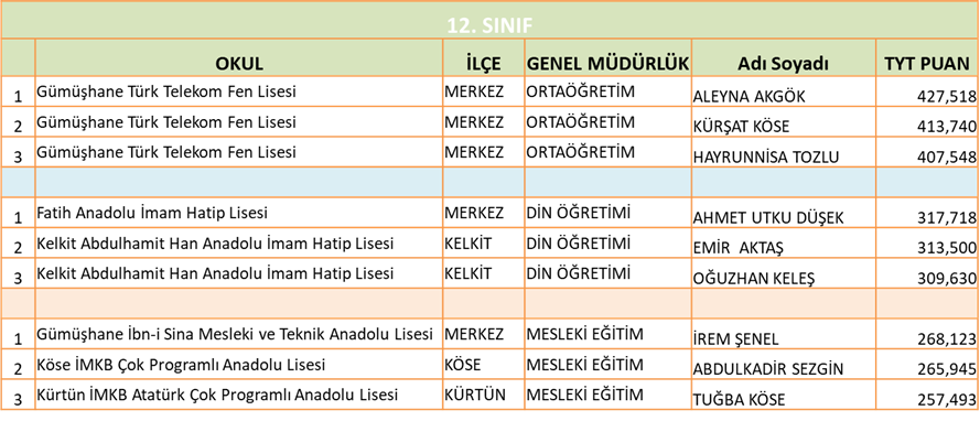 Tüm ilçelerde özellikle Şiran, Kürtün ve Torul’da gönüllü öğretmenlerin yaptığı gece dersleri de başarının arttırılmasında önemli katkı sağladı.