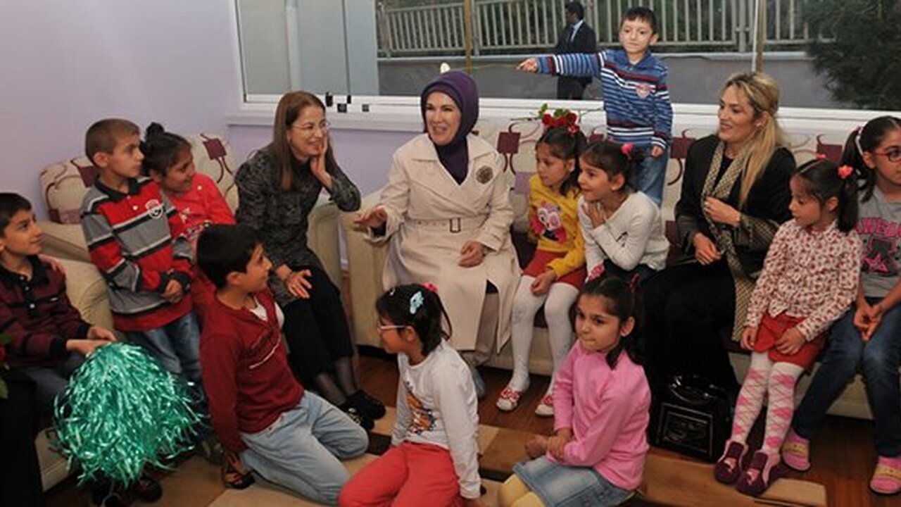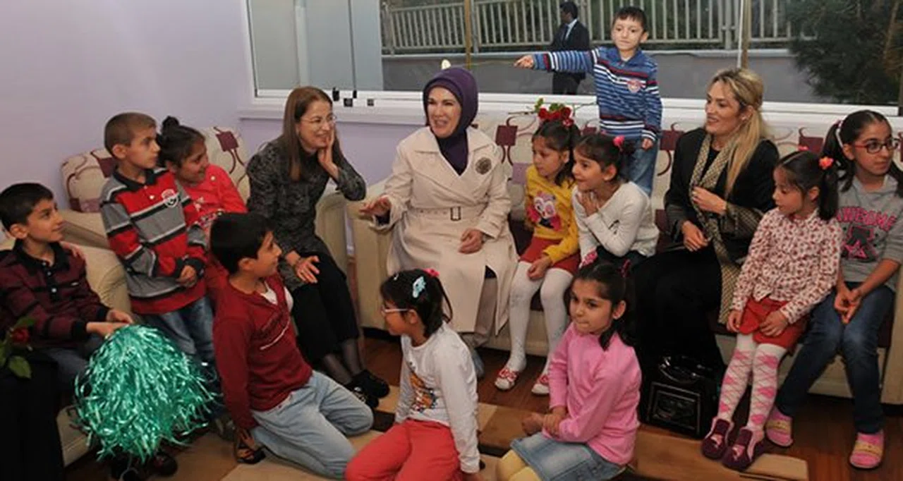 Sevgi Evlerinde kalan çocukları ziyareti sırasında onlarla sohbet eden Emine Erdoğan, çocukların gösterilerini izledi ve onlara çeşitli hediyeler verdi.