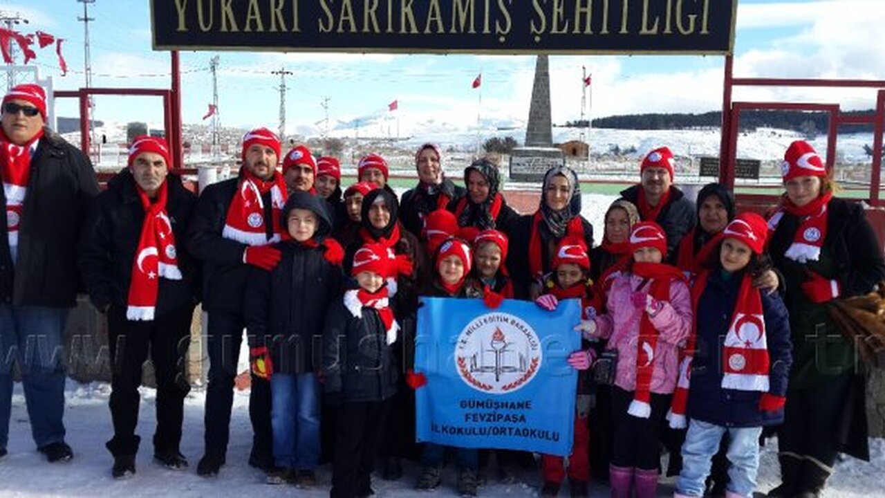 Gümüşhane Fevzipaşa İlkokulu/Ortaokulu Okul Aile Birliği Yönetiminin girişimleri ile öğrenci ve velilerden oluşan bir topluluk Sarıkamış şehitleri 100. yıl anma programına 22 kişiyle katıldı.