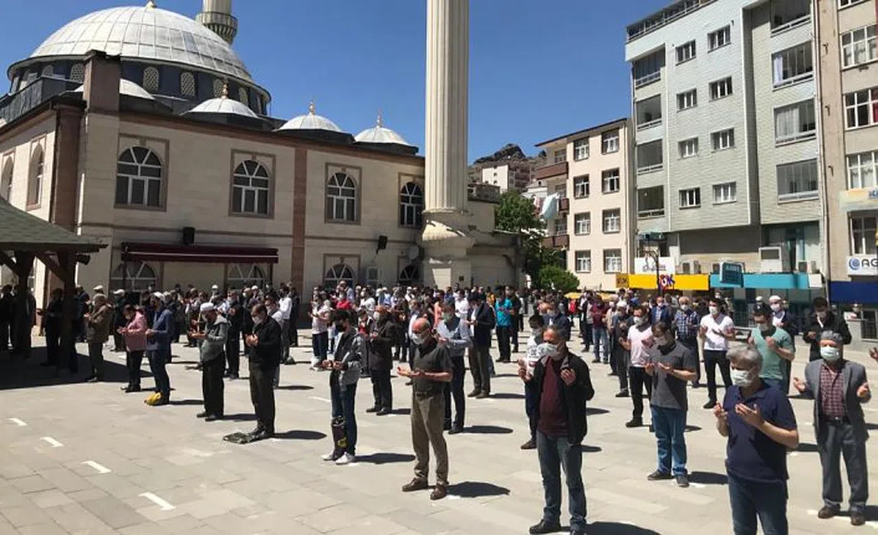 Cuma namazının ardından Kemaliye Camii avlusunda Filistinli şehitler için yoğun bir katılımla pandemi kurallarına da dikkat edilerek gıyabi cenaze namazı kılındı.