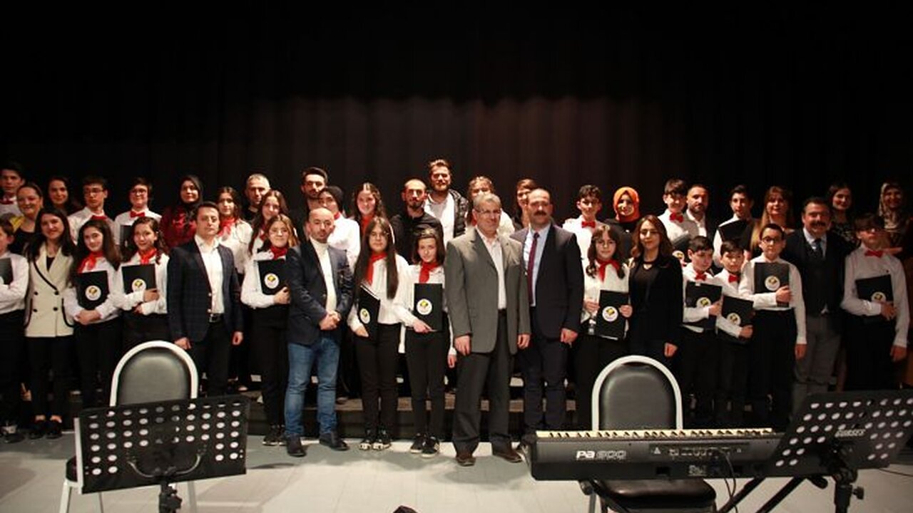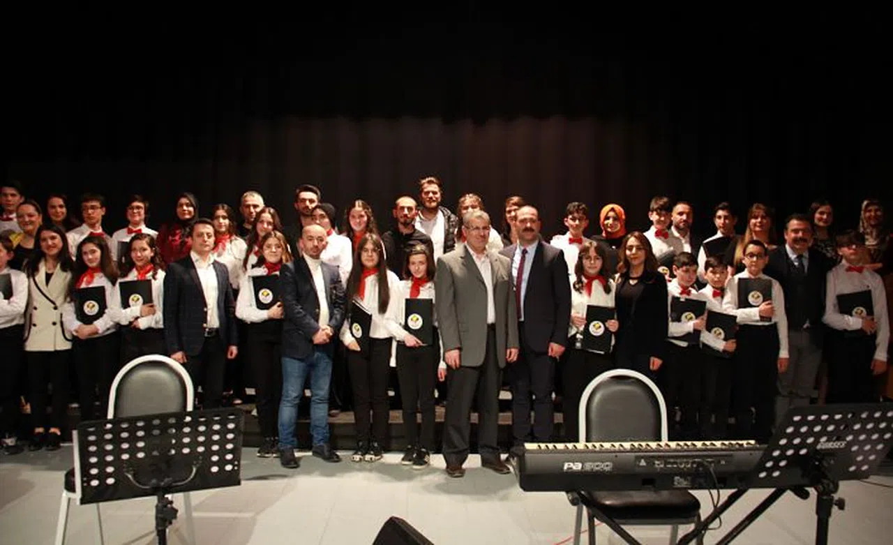 Gümüşhane Kültür Merkezi’nde düzenlenen programda 7 ve 8. sınıf öğrencilerinden oluşan Gençlik Korosu, Müzik Öğretmeni Hayrettin Özdemir’in şefliğinde birbirinden güzel türküleri seslendirdi.