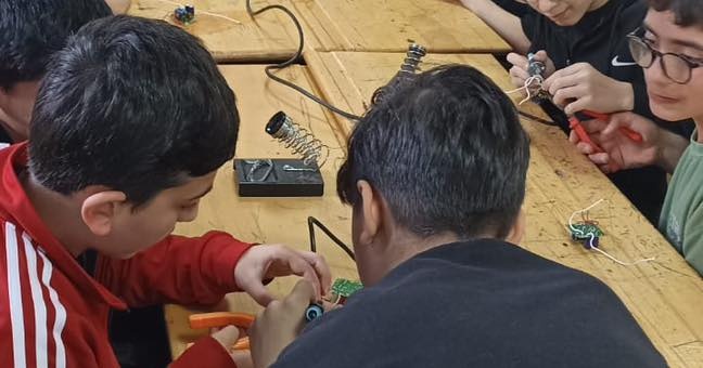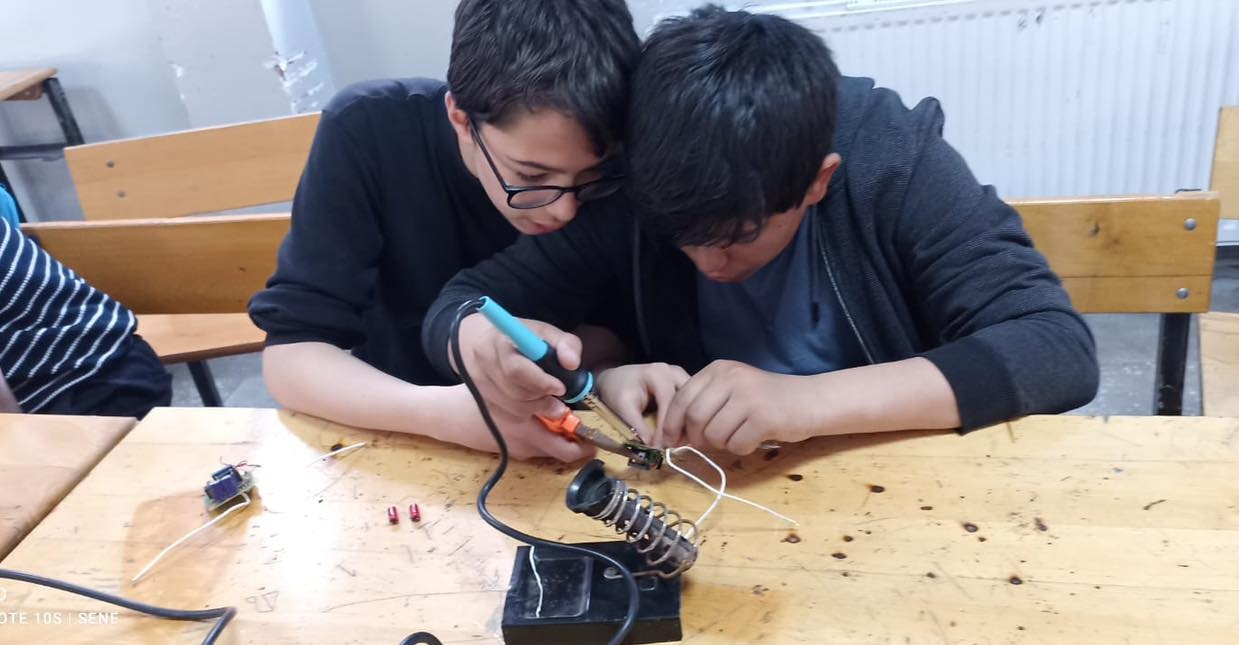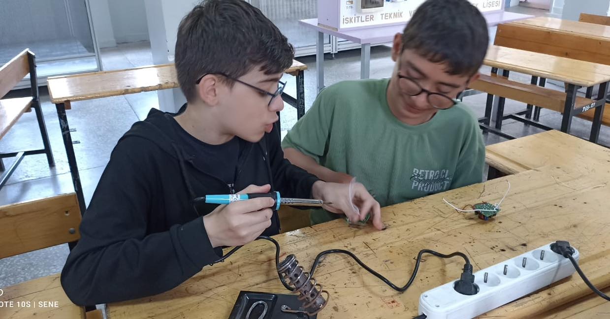 Kursun ilk 2 haftasında “İş Sağlığı ve Güvenliği” eğitimi alan kursiyer öğrenciler hafta sonları 1 gün olarak düzenlenen kursun bu haftaki ayağında “Lehimleme” çalışması yaptı.