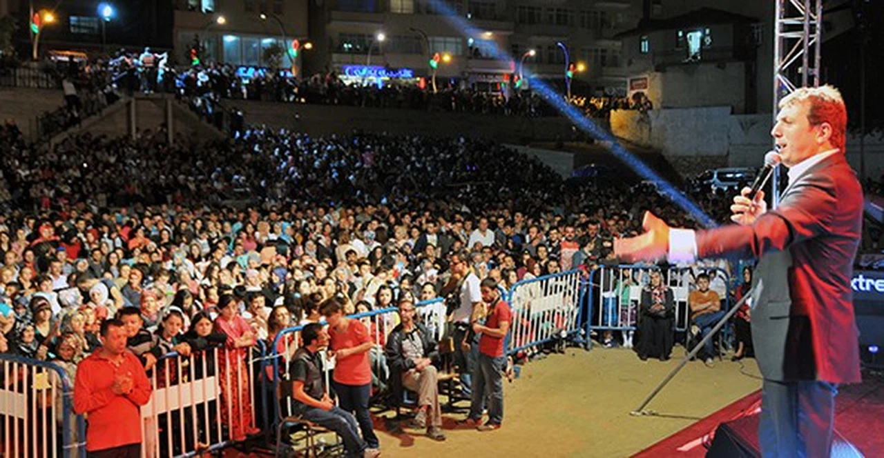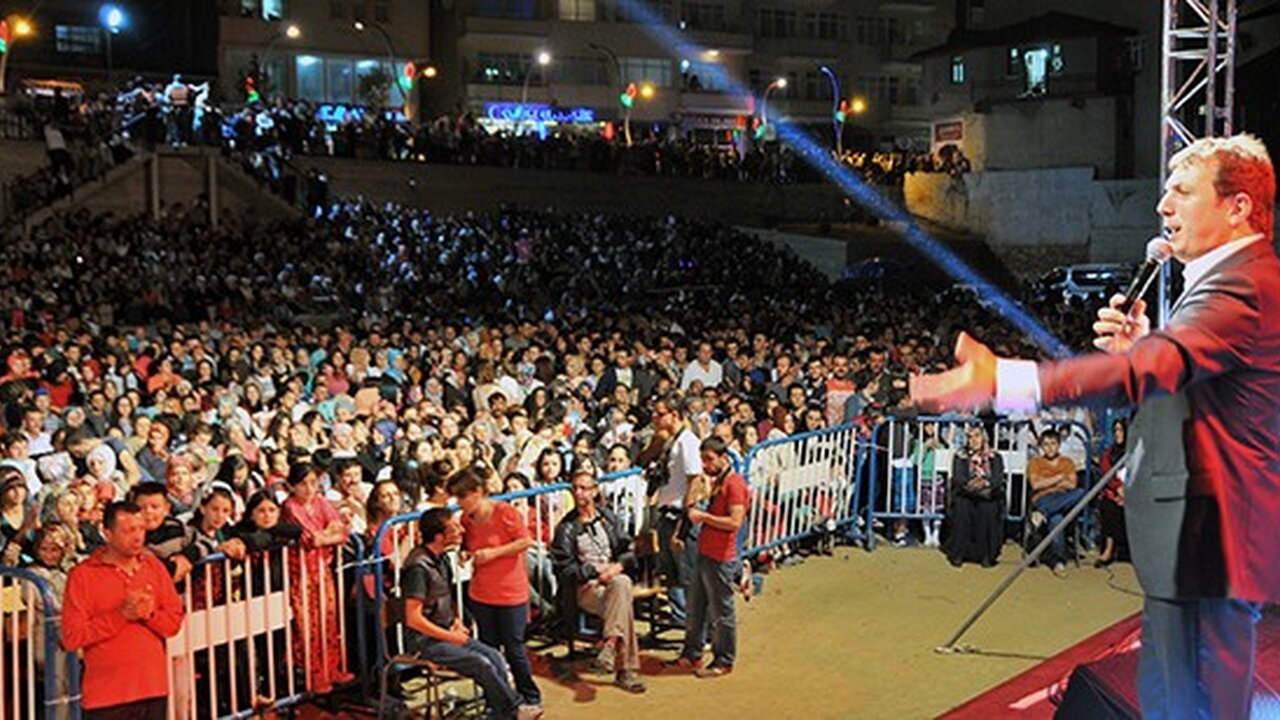 Gümüşhane’de devam eden 20. Uluslararası Kuşburnu-Pestil, Kültür ve Turizm Şenliği etkinlikleri kapsamında eski Atatürk Stadyumunda Hakan Tosun ve Oğuzhan Meydan’ın ardından sahne alan Onay Şahin, liseyi Gümüşhane’de okuduğunu, Gümüşhane’nin suyundan içip yolundan geçtiğini, lorunu, pestilini, kömesini yiyerek, Gümüşhane terbiyesi ile büyüdüğünü söyledi.
