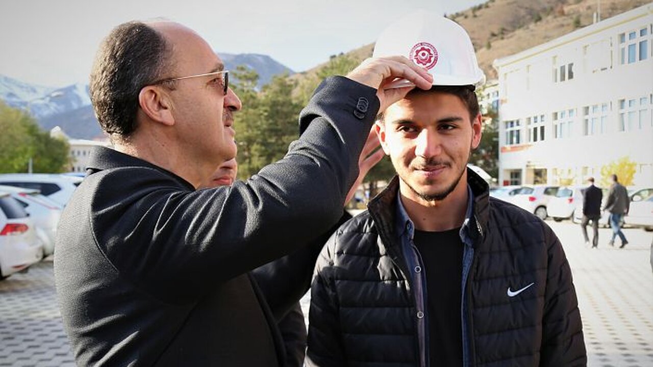 Öğrencilere mesleği sevdirme amaçlı yapılan etkinlik sonunda Rektör Prof. Dr. Halil İbrahim Zeybek, kendi elleriyle İnşaat Mühendisliği birinci sınıf genç mühendis adayına baretini taktı. Etkinlik hatıra fotoğrafı çekimiyle sona erdi.