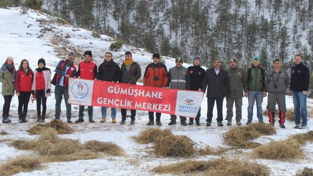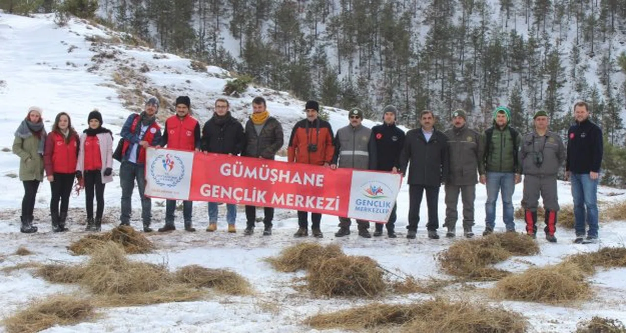 Gümüşhane’de gerçekleşen yoğun kar yağışı ve aşırı soğuk havalardan dolayı yaban hayatındaki hayvanlar unutulmayarak gerçekleştirilen proje için Gençlik ve Spor Bakanlığı tarafından oluşturulan www.gencgonulluler.gov.tr adresinden gönüllü ilanı duyurusu yapılarak gençlerin katılımı sağlandı.