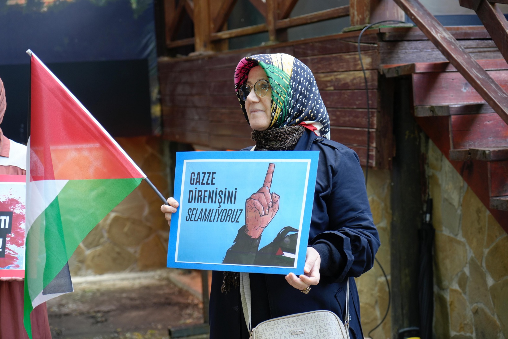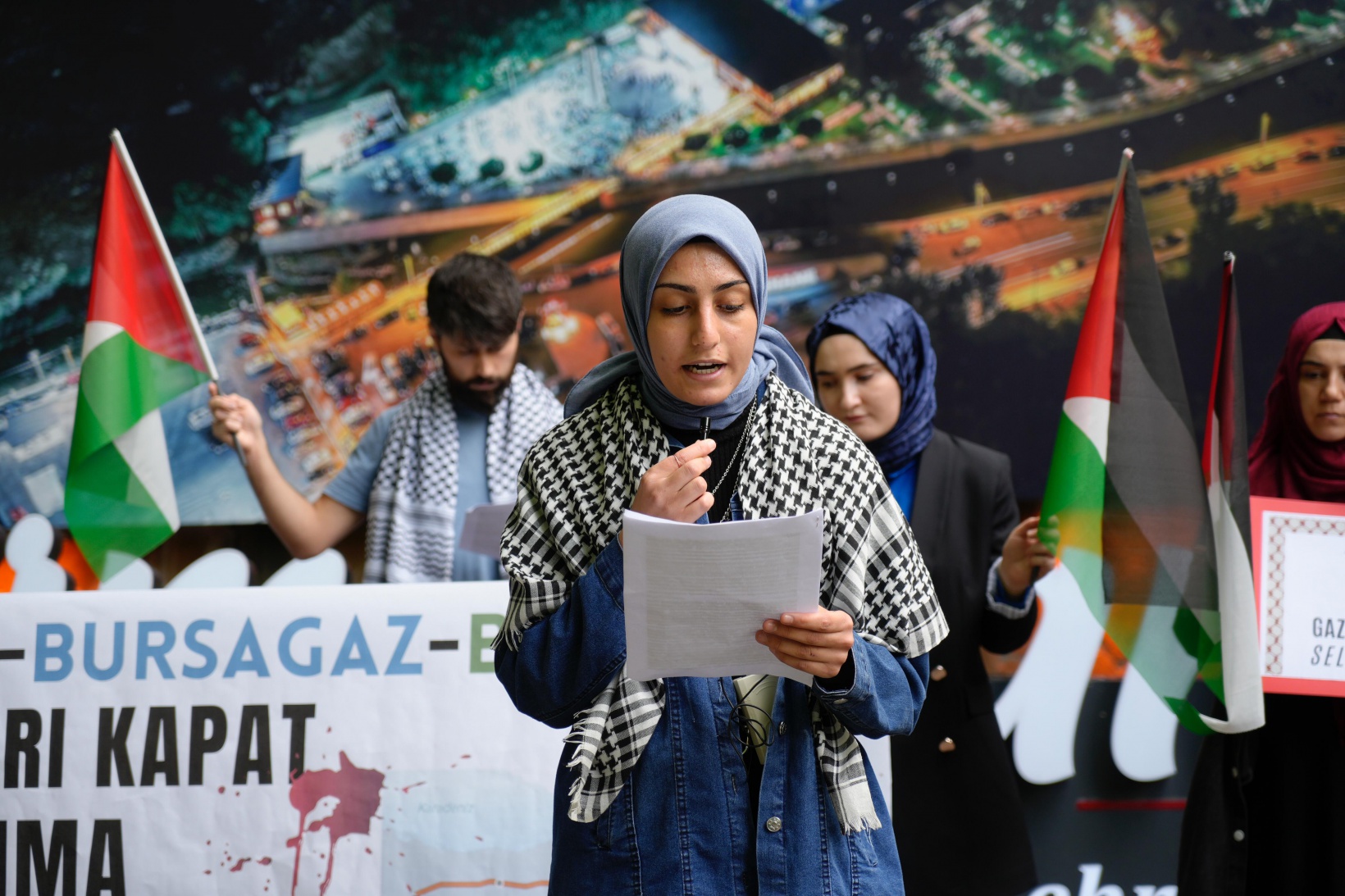 "Vanaları kapatın, ilişkileri tamamen kesin!" temasıyla gerçekleştirilen etkinlikte "Vanaları kapat soykırıma ortak olma", "Gazze direnişini destekliyoruz", "İsrail'e petrol sevkiyatı durdurulsun", "Katliama değil direnişe ortak ol", Nehirden denize özgür Filistin" yazılı döviz ve pankartlar açıldı.