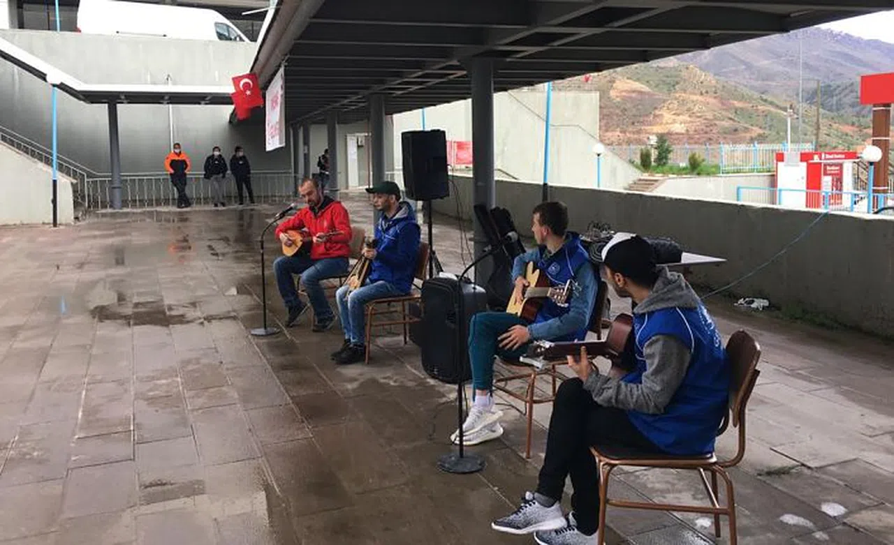 Gümüşhane Gençlik Merkezi Müzik Kulübü, yeni tip koronavirüs (Covid-19) salgını dolaysıyla Belçika’dan gelen ve karantina altında tutulan 245 Türk vatandaşına mini konser verdi.