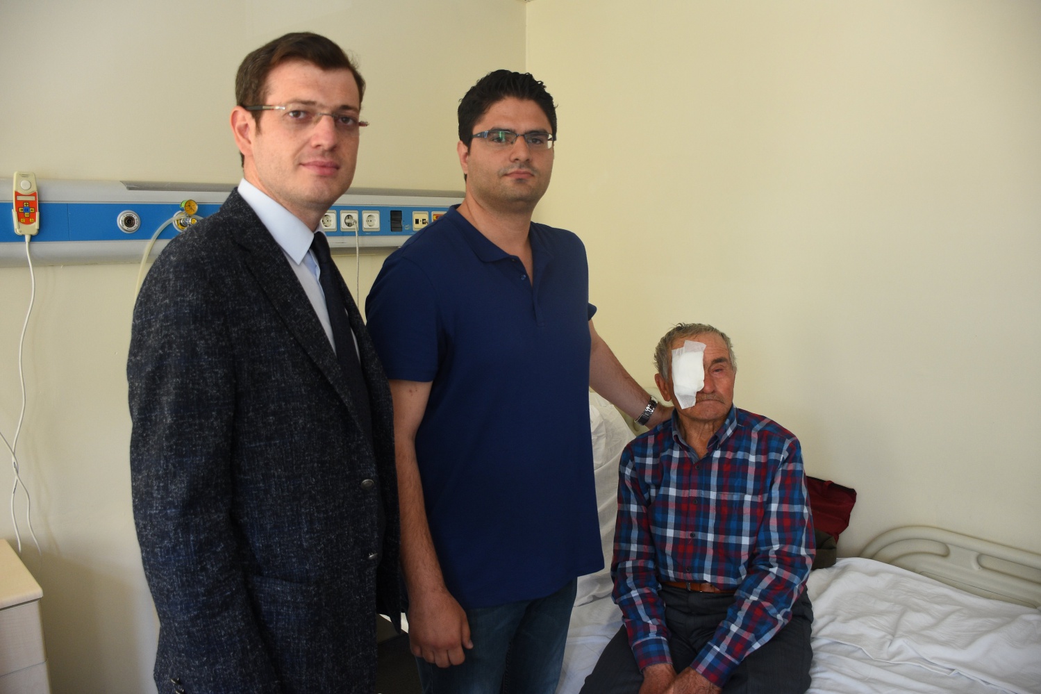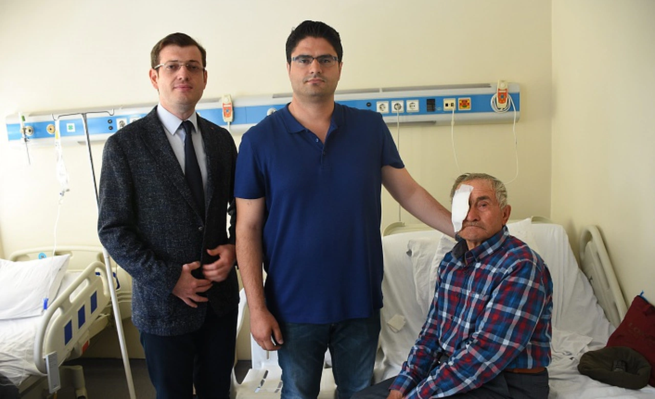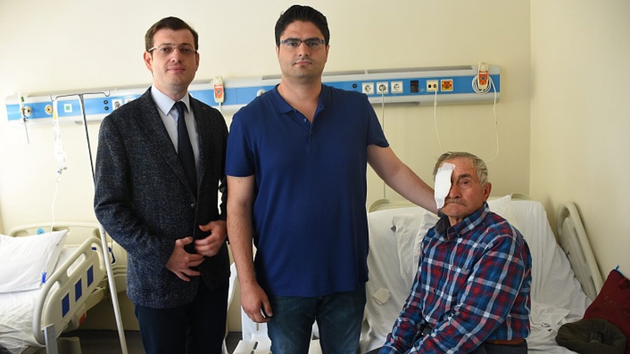 Ankara’dan getirilen özel dikişler yardımıyla yaşlı adamın göz lifleri gerçekleştirilen operasyonla onarılarak görme yetisi yüzde 30’dan yüzde 100’e çıkarıldı.