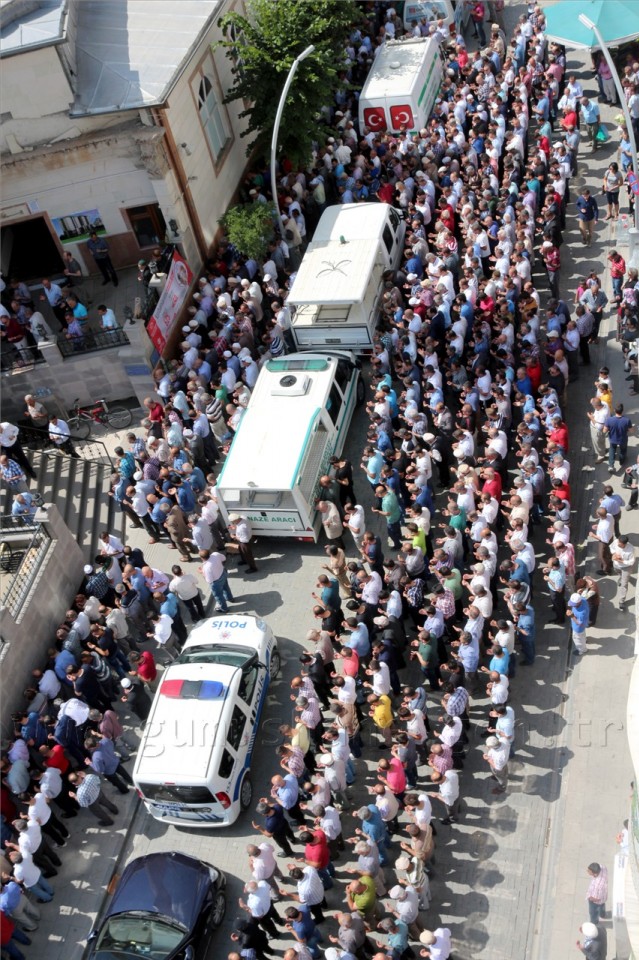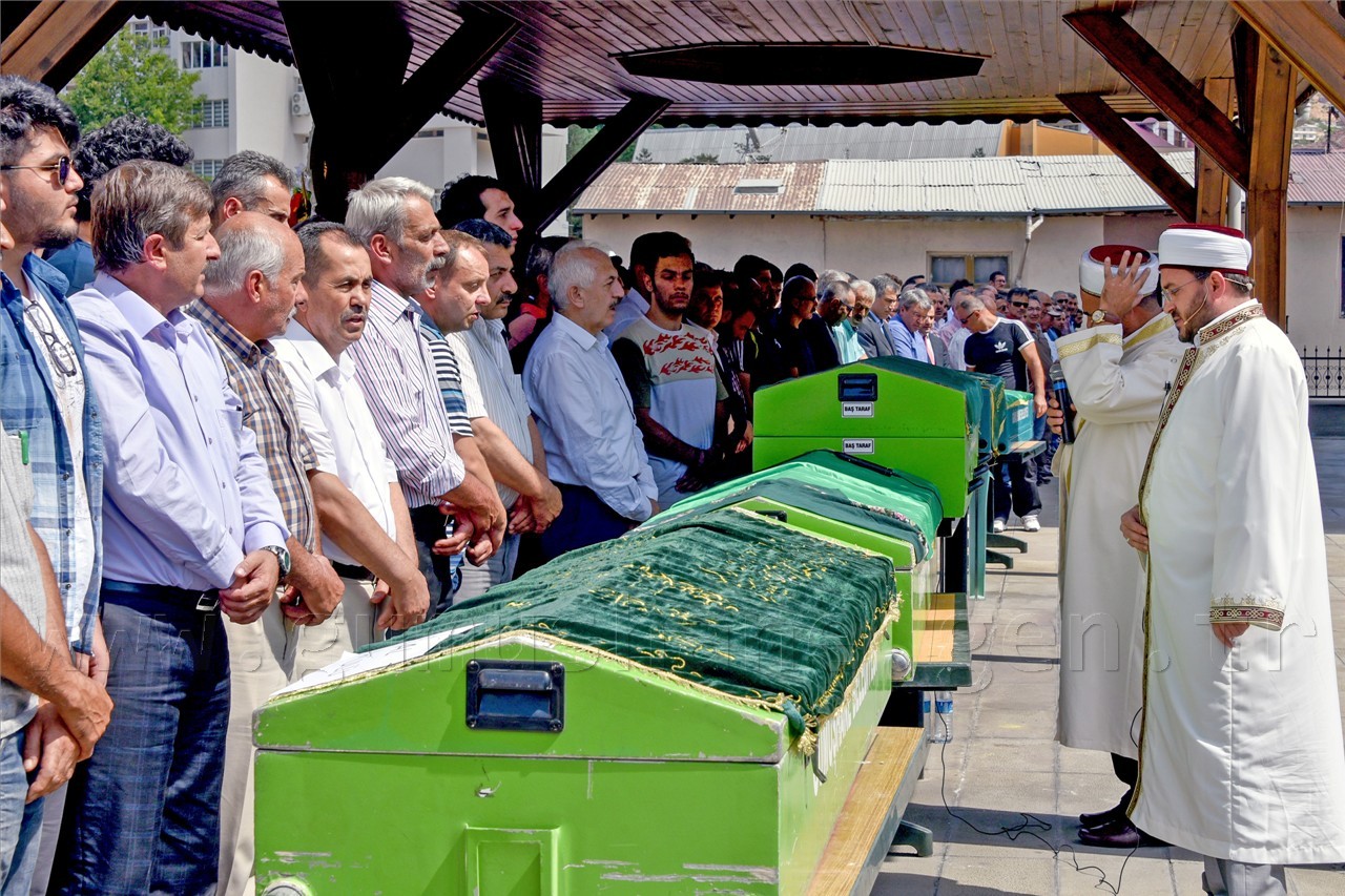Cami önünden geçen yolun trafiğe kapatılması ve cemaatin bir kısmının da buraya alınmasıyla başlayan cenaze namazını İl Müftü Vekili Hüseyin Hacıfettahoğlu kıldırdı. Beş kişinin cenaze namazının ayrı ayrı kılınmasının ardından tabutlar sırasıyla alınarak ayrı ayrı mezarlıklara götürülürken Pelit’in ve Köprülü’nün cenazesi Emirler mezarlığında, Aydoğdu’nun cenazesi Tekke köyünde, Kullukçu çiftinin cenazesi ise Eskibağlar Mezarlığında toprağa verildi.