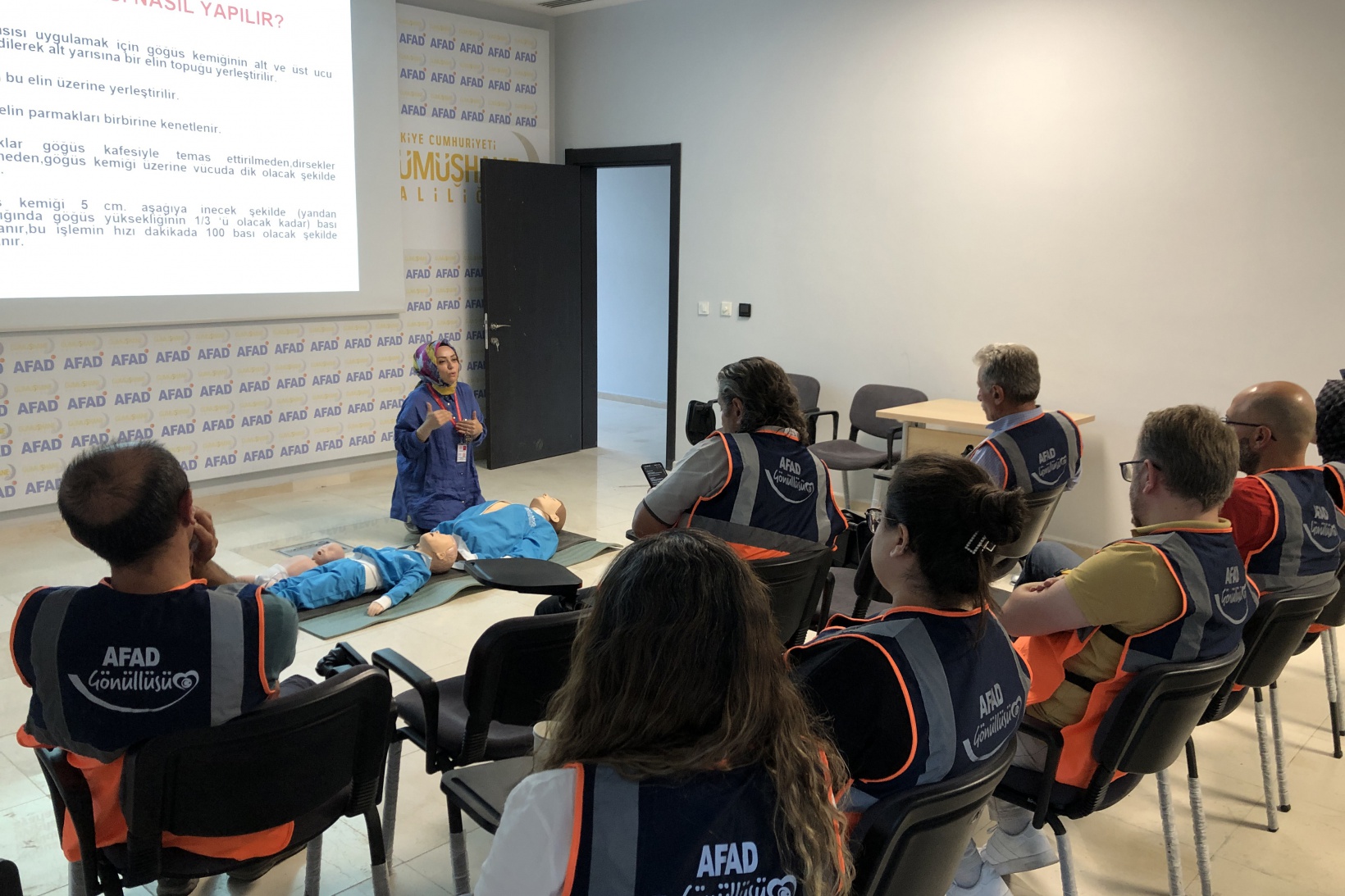 Aldıkları sağlık sporları ve diğer belgelerle birlikte AFAD’a müracaat ederek Afet Farkındalık Eğitimine katılan sporcular başta ilk yardım, kurtarma, yangın gibi konularda AFAD Eğitim Uzmanı Taşkın Okur ve uzman ekiplerden eğitim aldı.