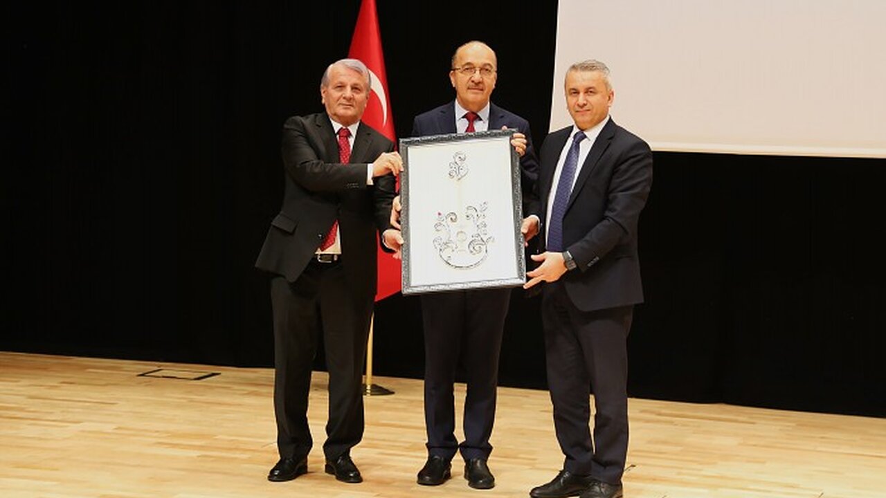 Törende GÜKAV Başkanı Prof. Dr. Kenan Aydın ve GÜSİAD Başkanı Dr. Yüksel Yalçın tarafından günün anlam ve önemine ilişkin Gümüşhane Üniversitesi’ne katkı ve emeklerinden dolayı Rektör Zeybek’e hediye takdim edildi.