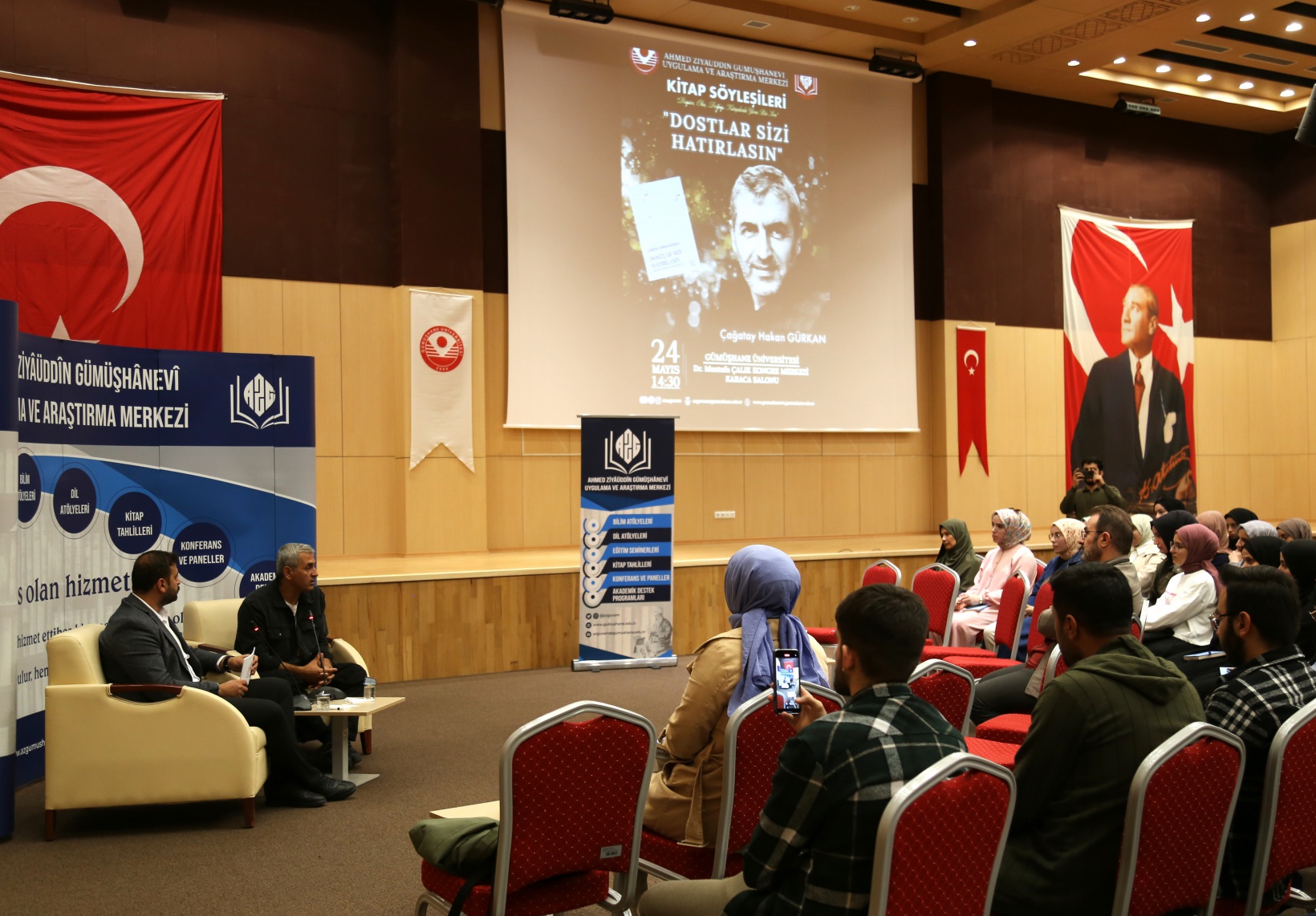 Dr. Mustafa Çalık Kongre ve Kültür Merkezi Karaca Salon’da Öğr. Gör. Dr. Cuma Zehiroğlu’nun moderötörlüğünde gerçekleşen söyleşide Yazar Çağatay Hakan Gürkan hikâyesinden etkilendiği ve bu toprakların insanı olan, her biri kendi alanında emsali olmayan değerlerin biyografilerinin kaleme alındığı “Dostlar Sizi Hatırlasın” adını verdiği kitabı hakkında konuştu.