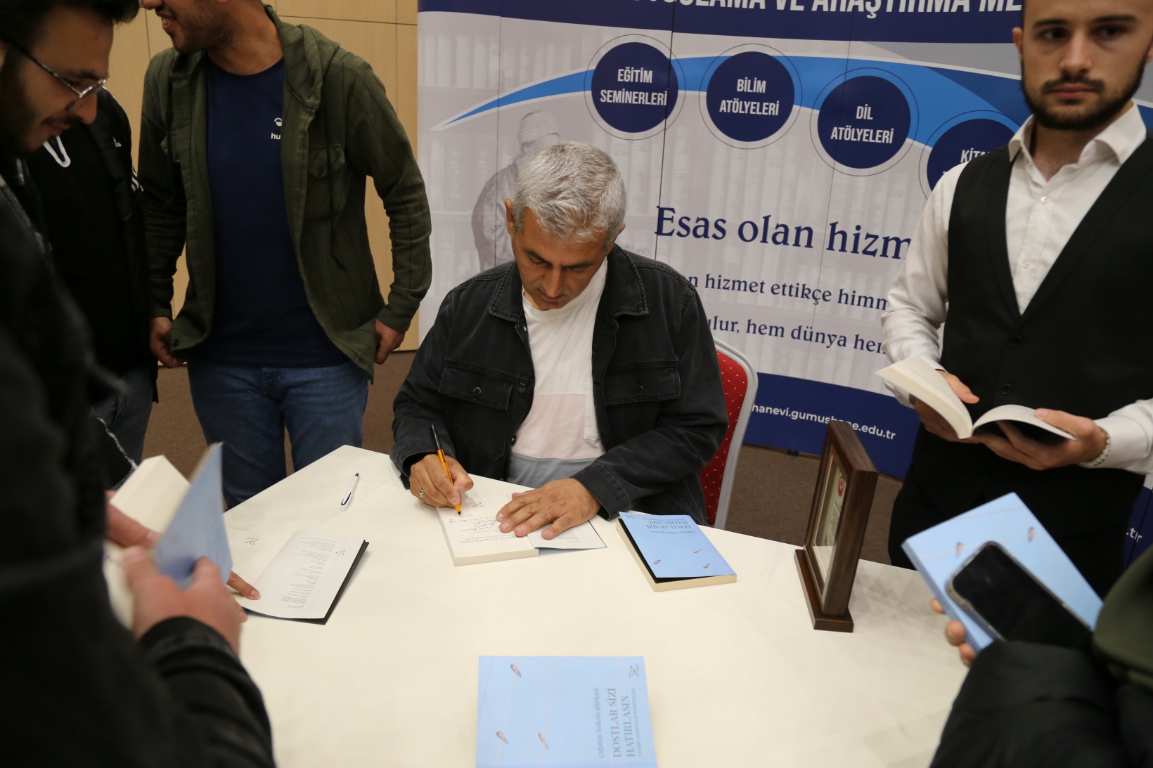 Söyleşi etkinliği sonunda Yazar Çağatay Hakan Gürkan’a Ahmed Ziyâüddîn Gümüşhânevî Uygulama ve Araştırma Merkezi Müdürü Doç. Dr. Berat Sarıkaya tarafından plaket takdim edildi. Ardından imza programı düzenlendi.