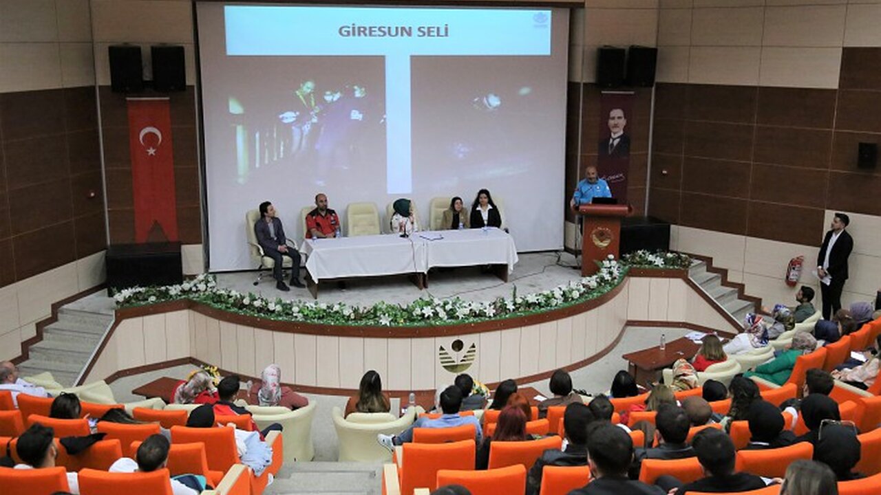 Açılış konuşmasının ardından Moderatörlüğünü Hemşirelik bölümü Dr. Öğr. Üyesi Nurşen Kulakaç’ın yaptığı programda UMKE 3. Bölge Koordinatörü Serkan Sayar tarafından “Dünya ve Türkiye’de Afet Hemşireliği”, Sağlık Bilimleri Fakültesi Hemşirelik Bölümü Arş. Gör. Dr. Murat Semerci tarafından “Afetler ve Teknoloji Kullanımı”, UMKE Gümüşhane İl Sorumlusu Oktay Özdamar tarafından “Enkaz Altından Yaralı Kurtarma ve Acil Yardım: UMKE deneyimleri”, Gümüşhane Üniversitesi Sağlık Bilimleri Fakültesi Hemşirelik Bölümü Öğrencisi Hemşire Rabia Rümeysa Akdemir tarafından “Öğrencilerimizden Afet Hemşireliği ve Geleceği” ve Gümüşhane Devlet Hastanesi Sağlık Bakım Hizmetleri Müdürü Çiğdem Ataman tarafından da “Deneyim Paylaşımları” başlığı altında sunumlar gerçekleştirildi.