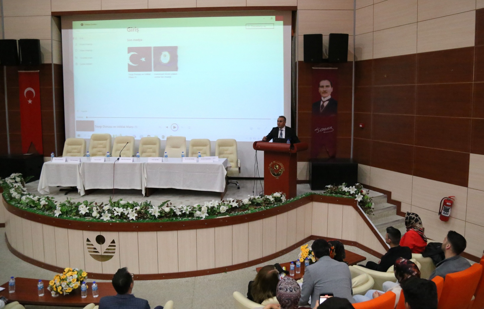Panelin açılış konuşmasını yapan Rektör Prof. Dr. Oktay Yıldız “Eğitim öğretimin temel odağında üç temel amaç vardır. Bunlardan birincisi eğitim öğretim, ikincisi araştırma geliştirme, üçüncüsü de toplumsal katkıdır. Bunlardan bir tanesi eksik olursa bir arada durmaları mümkün değil. Doğru bir hemşire, doğru bir mühendis, doğru bir öğretmen, doğru bir birey olabilmenin yolu bu üçayağı tamamlamaktan geçer. Bu üçayağı tamamlamayan üniversite, üniversite olmaz. Eskiden hemşirelik mesleği, tansiyon ölçmek ve pansuman yapmak anlamına gelirken, bugün bu meslek modern çağın modern meslekleri arasına girdi. Şuan salonda bulunan öğrenci arkadaşlarım size sesleniyorum: Sene sonuna geldiğinde 2209 A ve B projelerine odaklanın. TÜBİTAK tarafından verilen bireysel genç girişim donanımında kendi iş yerlerinizi kurmaya çabalayın. Artık dünya duvarlarla çevrilmiş, Amerikanvari kampüs sistemlerini terk etmiştir. Dünyada üniversite eğitiminde farklı ekoller vardır. Bunlardan bir tanesi İngiliz ekolüdür. İngiliz ekolünde amaç; bilim, bilim içindir. Oysa olması gereken bilim, toplum içindir. Biz toplumun ihtiyaçlarını gören, topluma katkı sağlayan, topluma entegre olan, toplumun ihtiyaçlarına, dertlerine deva olan, problemleri çözen tarafta yer aldığımızda meslek olarak üçüncü sacayağını ortaya çıkarmış oluruz” dedi.