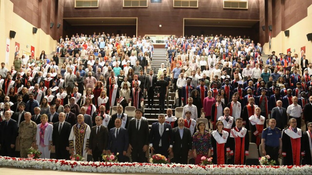 Tanıtım filmi gösteriminin sonunda üniversite ve fakülteler birincisi İlahiyat Fakültesi öğrencisi Kübra Taşar, yaptığı mezuniyet konuşmasında şunları söyledi: “Öğrencilik hayatımız bitmiş olsa da ilim yolunda ilerleyecek olan bizler öğrenme vazifemizi her alanda devam ettirmeliyiz. Çünkü biz cılız bir mum ışığı kadar, ışık saçan ya da aydınlığıyla gözümüzü kamaştıracak olan gelecek nesillerin mimarları olacağız. Bunun için de gençken ilim ağacımızı dikeceğiz ki ihtiyarlığımızda da gölgesinde barınacağımız bir ağacımız olacak. Hazreti Ali'nin de dediği gibi ilim, maldan daha hayırlıdır. Mal harcamakla biter, ilim ise paylaşmakla artar. Bizler de bitecek olan mal peşinde değil, paylaştıkça artacak olan ilmin peşinde koşan ilim sahipleri olmalıyız. Değerli arkadaşlarım, bugün yeni hayatımızın hep birlikte ilk adımını atıyoruz. Geleceğimizi güzelleştirmek için hepimiz çok çalıştık ve senelerce emek verdiğimiz bu yolun son virajındayız. Unutmayalım ki her yeni başlangıç, yeni bir umudu da beraberinde getirir. Bugün burada olan siz kıymetli misafirlerimize, değerli hocalarıma, sevgili arkadaşlarıma ve her zaman yanında olarak buralara kadar gelmeme vesile olan anneme ve babama ve desteklerini benden esirgemeyen sevdiklerime en içten teşekkürlerimi sunuyorum.” Taşar, konuşmasının ardından tüm mezunlar adına mezuniyet kütüğüne plaka çaktı.