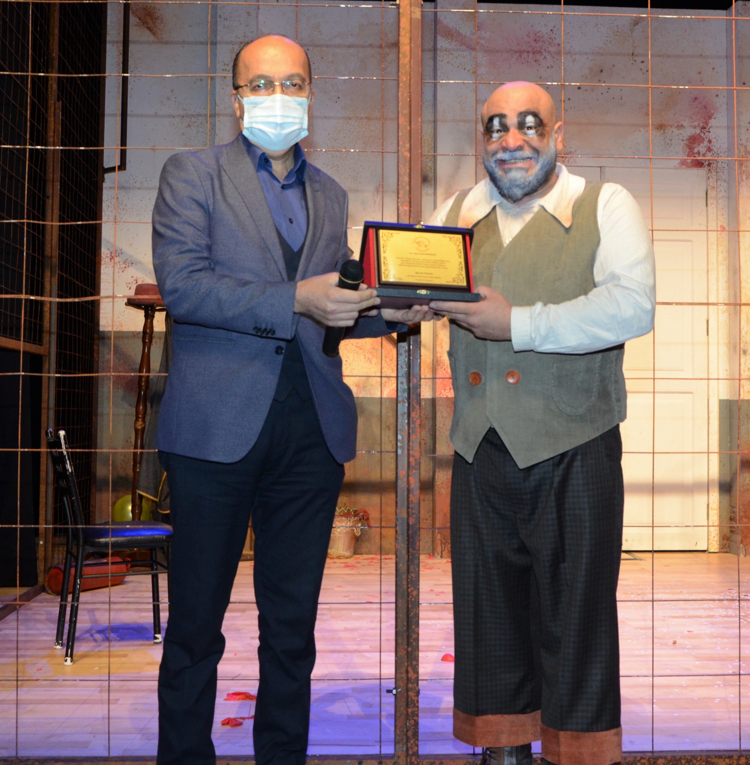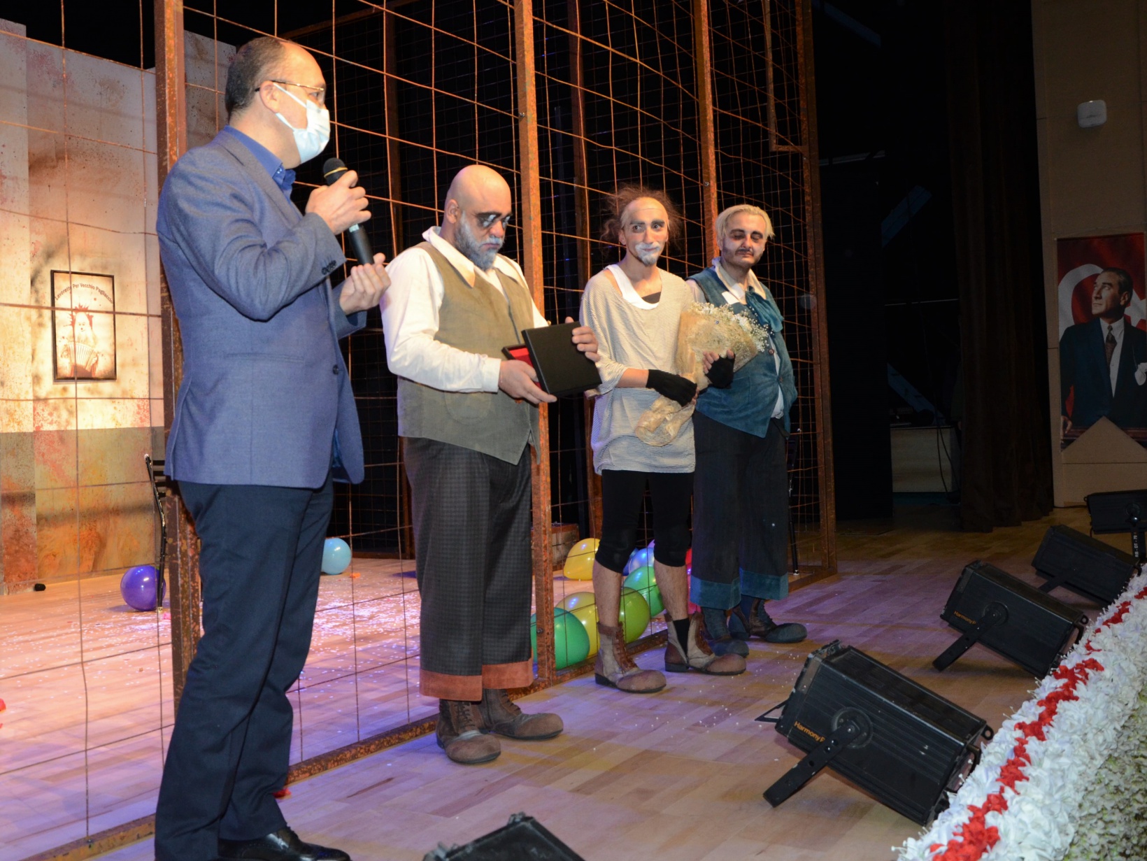 Tiyatro gösterisinden sonra Rektör Prof. Dr. Halil İbrahim Zeybek Trabzon Devlet Tiyatroları ekibine çiçek ve plaket takdiminde bulundu.