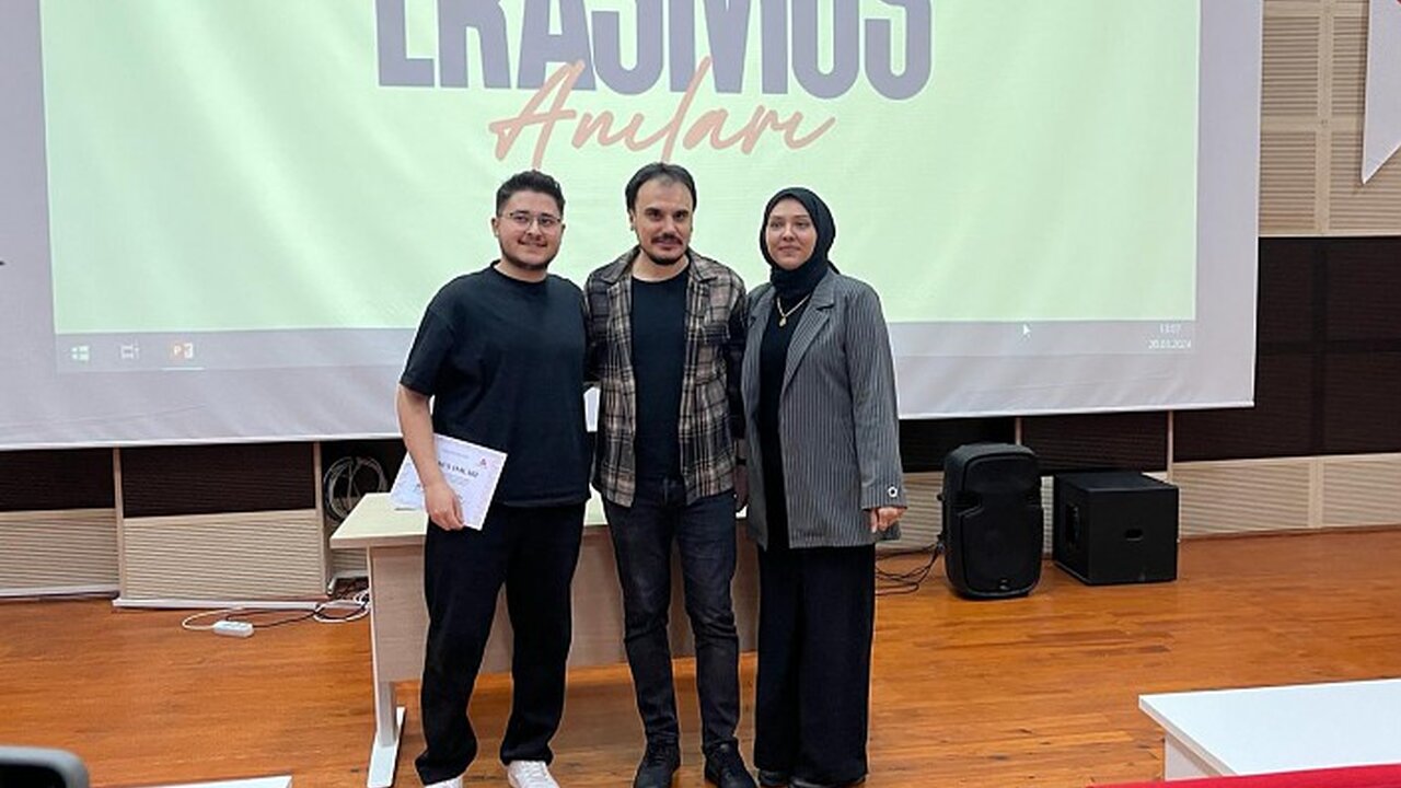 Erasmus eğitiminin önemini ve prosedürlerden bahseden Gazetecilik Bölümü 4. Sınıf öğrencisi Berfin Özkan ise “Yaşantımız sadece yaşadığımız şehirden veya Türkiye’den ibaret değil. Bizler Dünya genciyiz. Sizin de bu deneyimden faydalanmanızı istiyoruz. Not ortalamasından sonra iki aşamalı dil sınavına tabi tutuluyorsunuz” ifadelerini kullandı. Özkan, Gazetecilik Bölümü olarak Polonya, Portekiz ve Romanya ülkelerine gidilebileceğini, kendisinin maddi olarak Polonya’yı tercih ettiğini vurguladı.