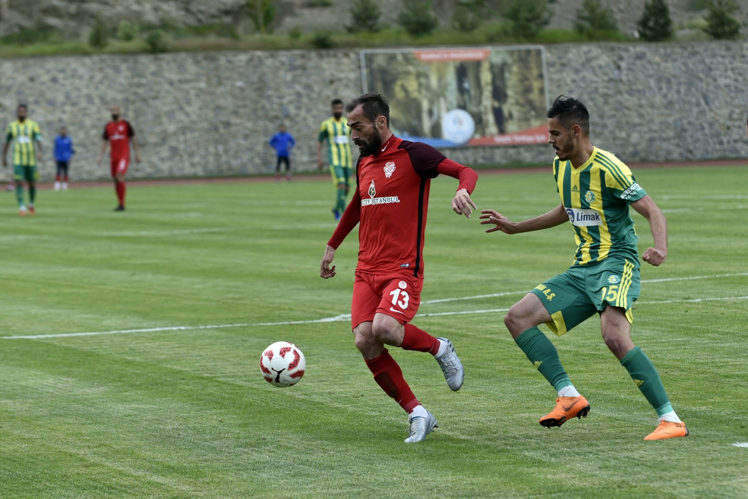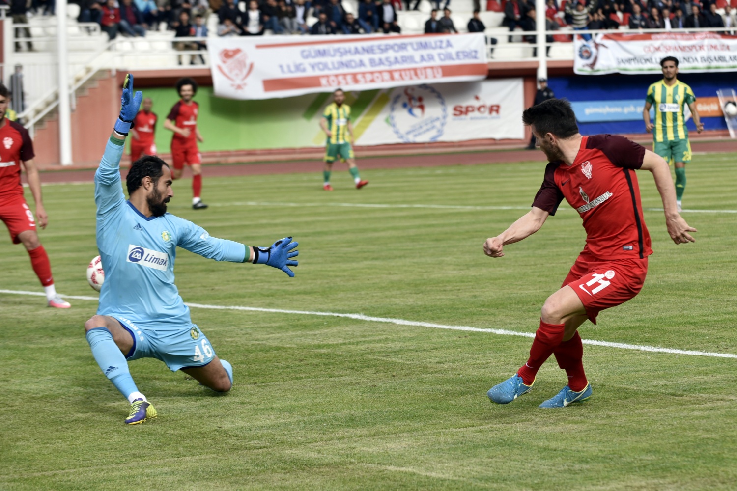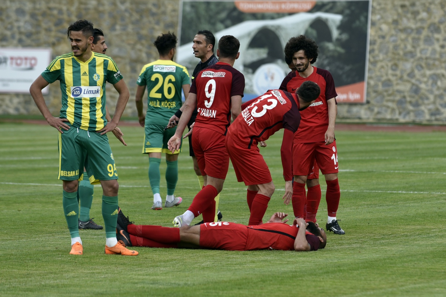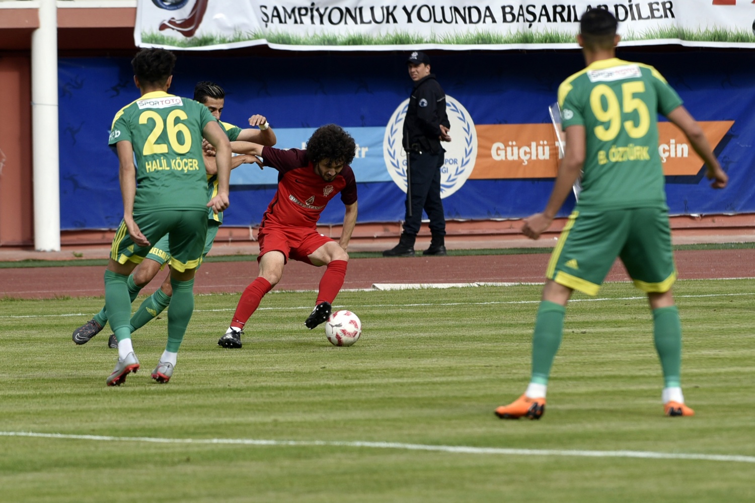 17.dakikada konuk ekip Şanlıurfaspor’un kazandığı serbest vuruşta topun başına gelen Hüseyin Kala’nın vuruşunu kaleci Hasan Hüseyin Akınay, iki hamlede kontrol etti.