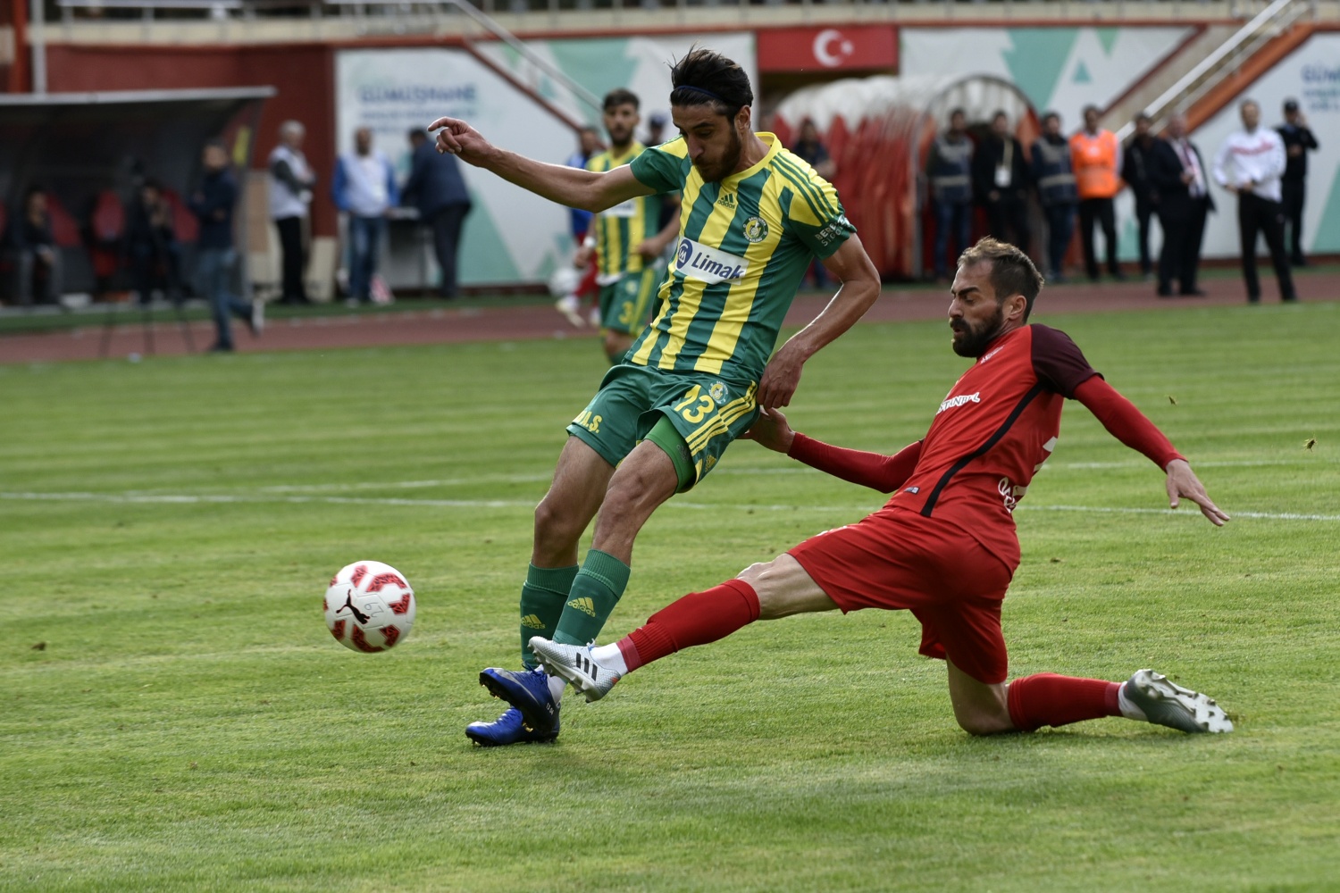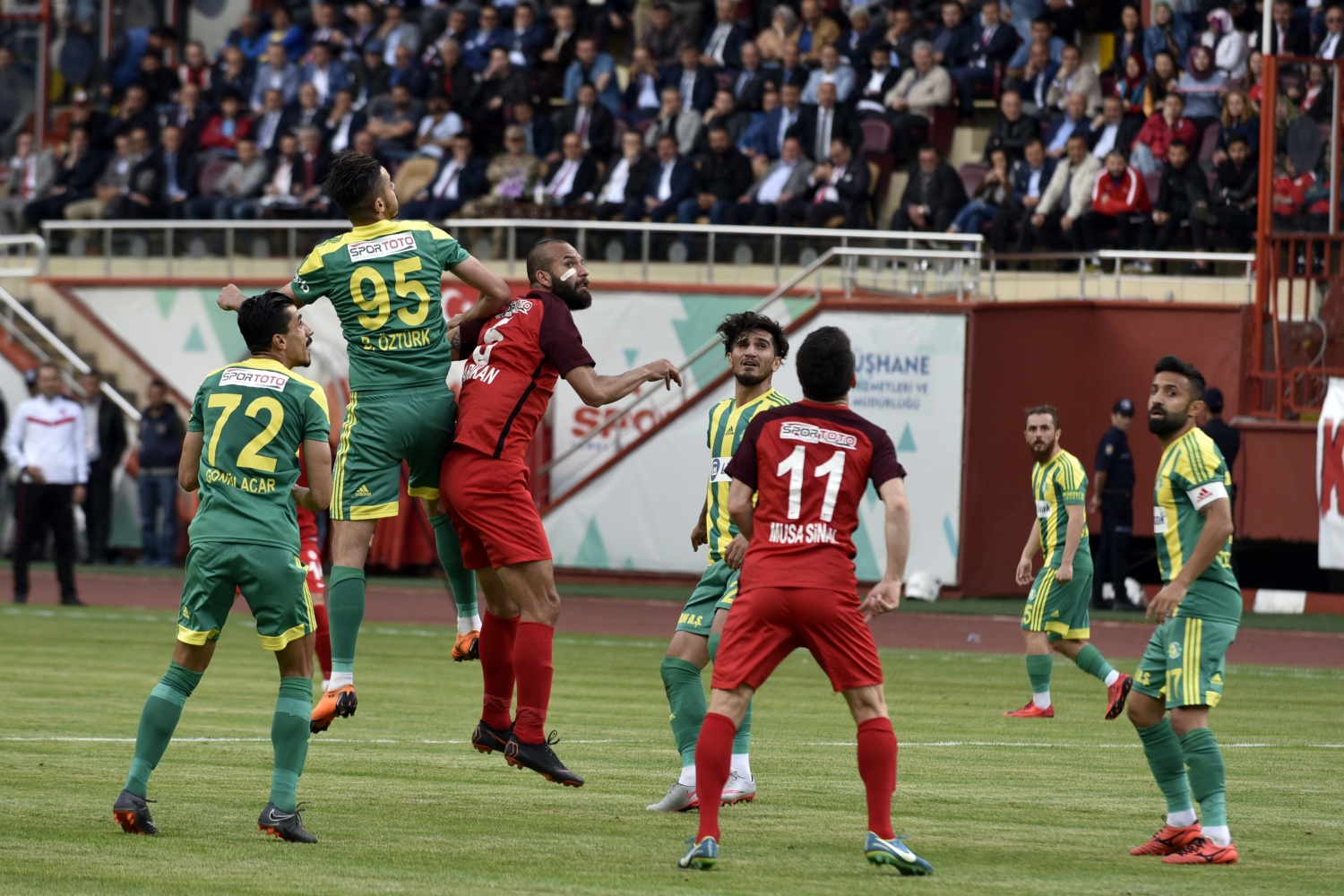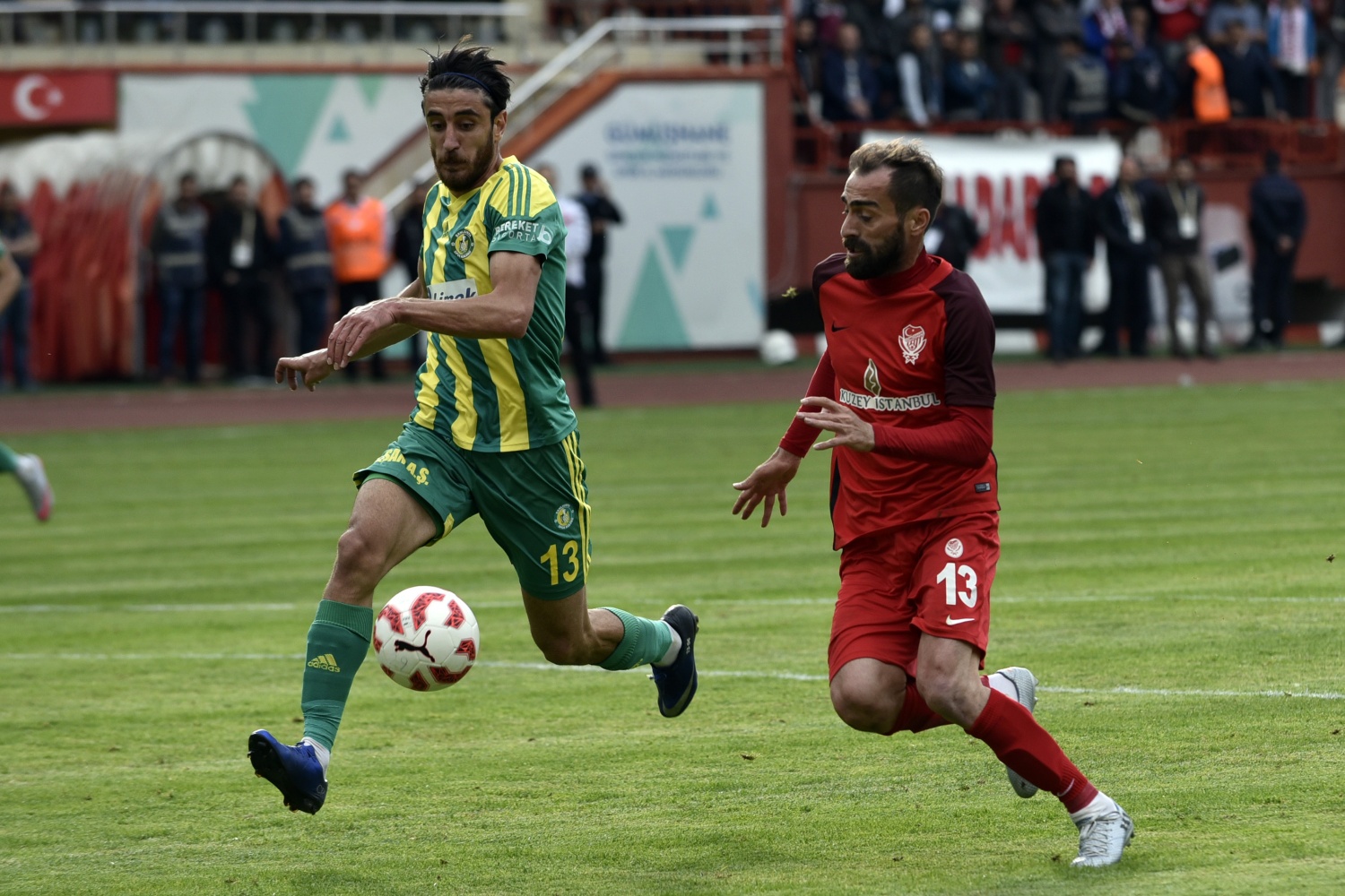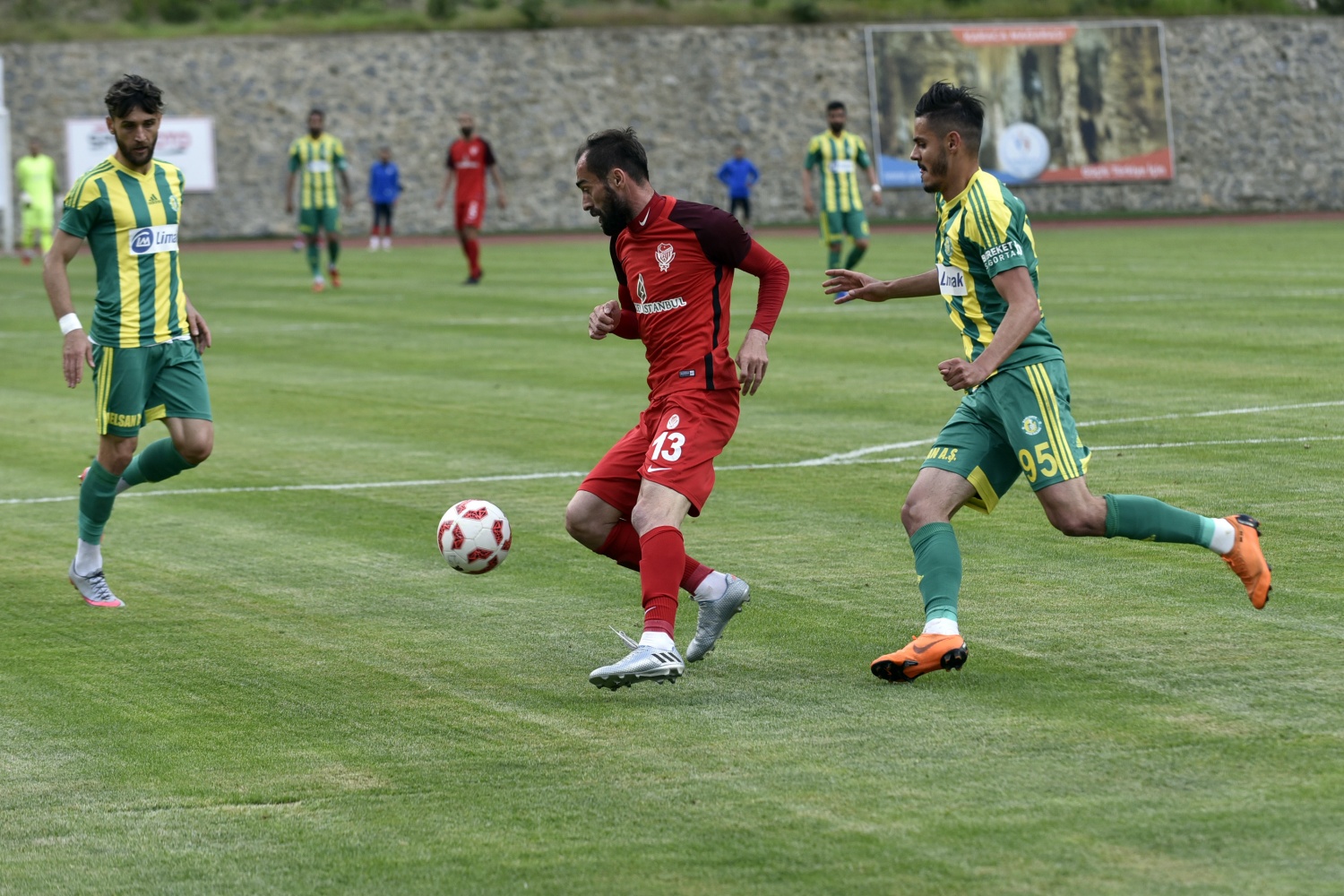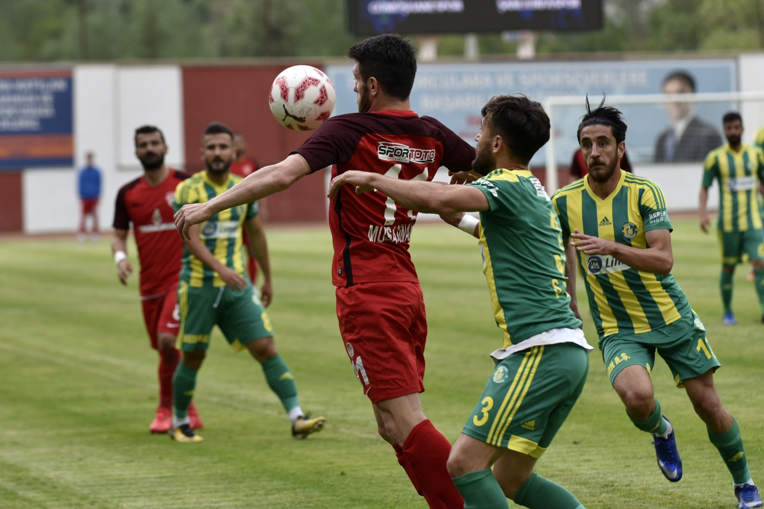 17.dakikada konuk ekip Şanlıurfaspor’un kazandığı serbest vuruşta topun başına gelen Hüseyin Kala’nın vuruşunu kaleci Hasan Hüseyin Akınay, iki hamlede kontrol etti.