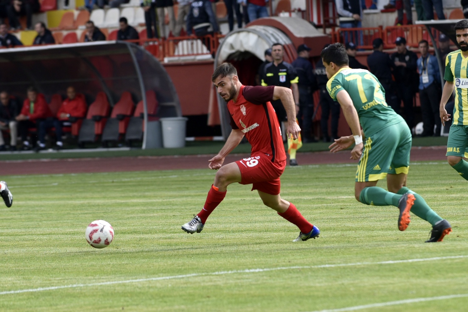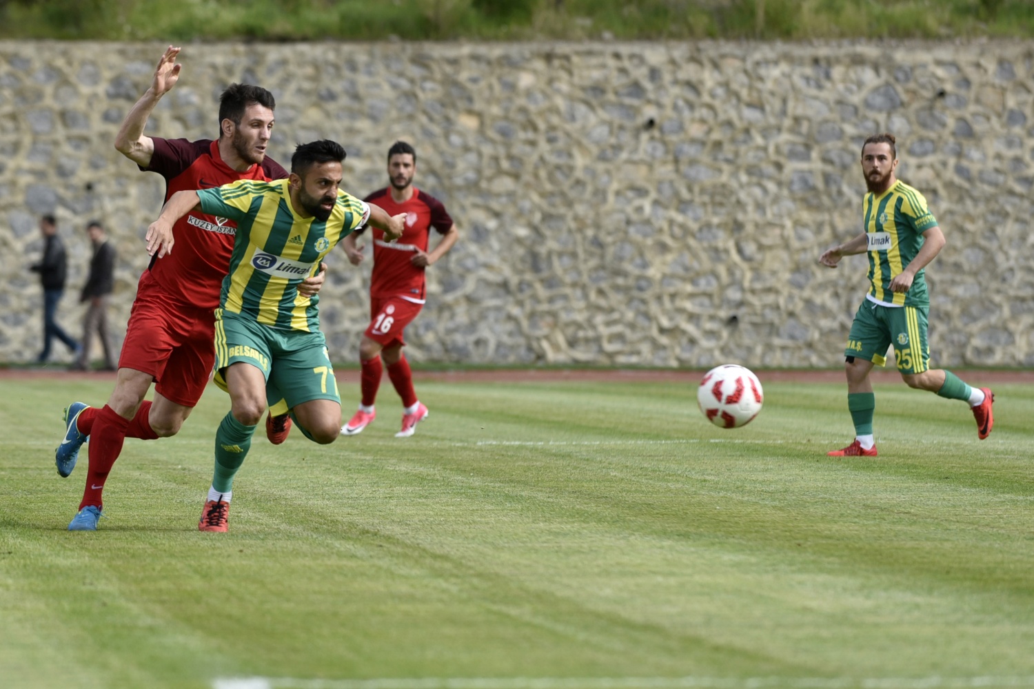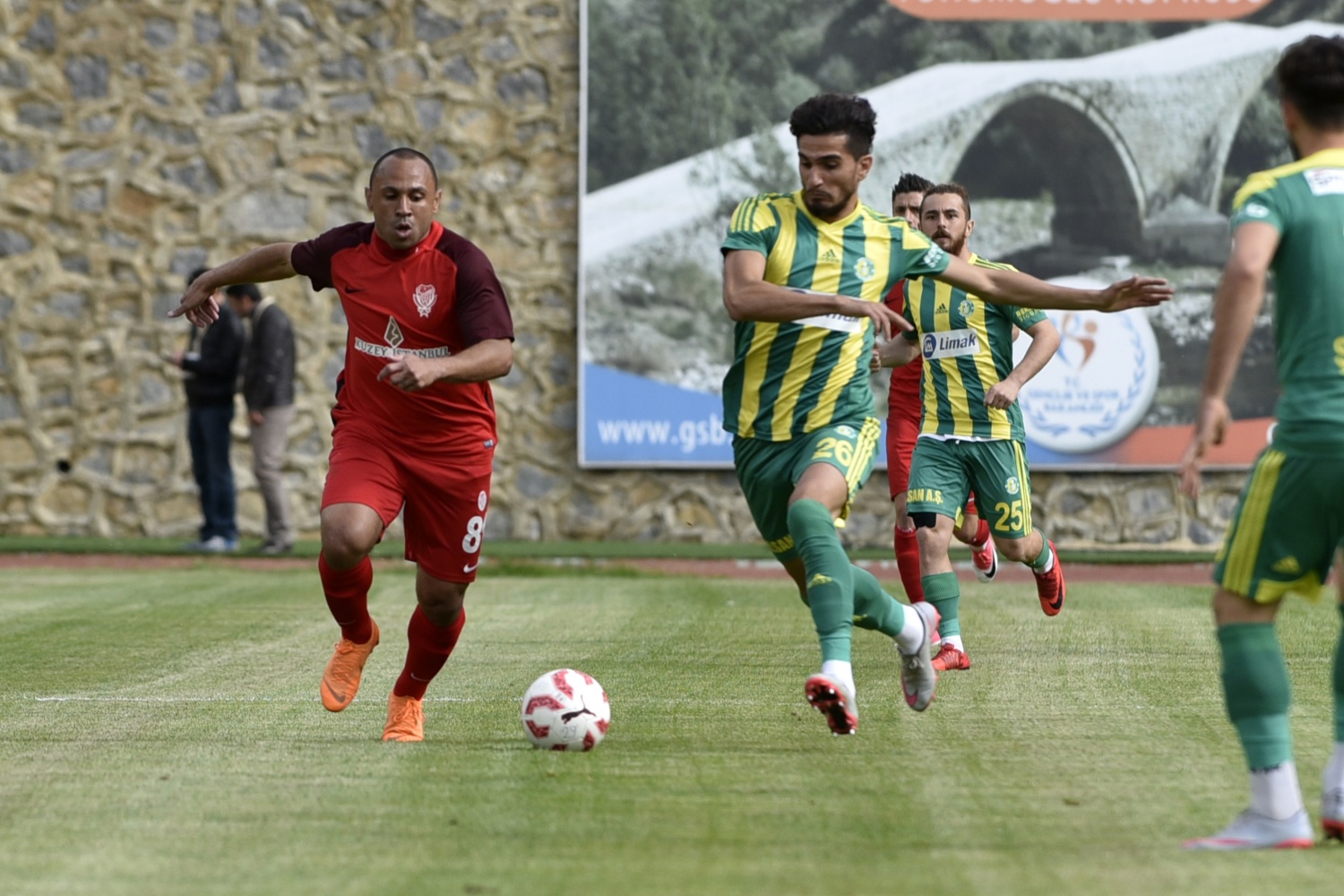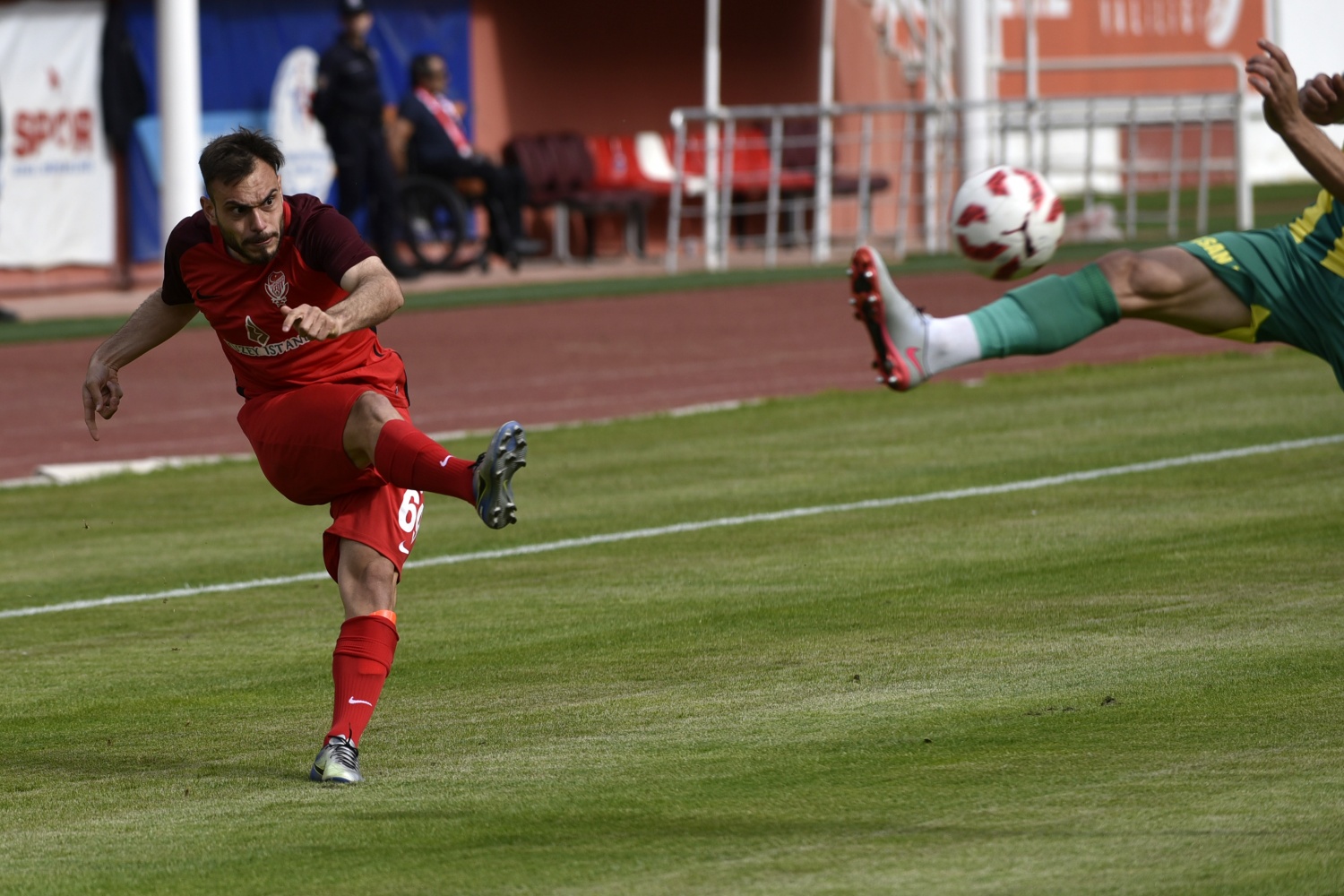 17.dakikada konuk ekip Şanlıurfaspor’un kazandığı serbest vuruşta topun başına gelen Hüseyin Kala’nın vuruşunu kaleci Hasan Hüseyin Akınay, iki hamlede kontrol etti.