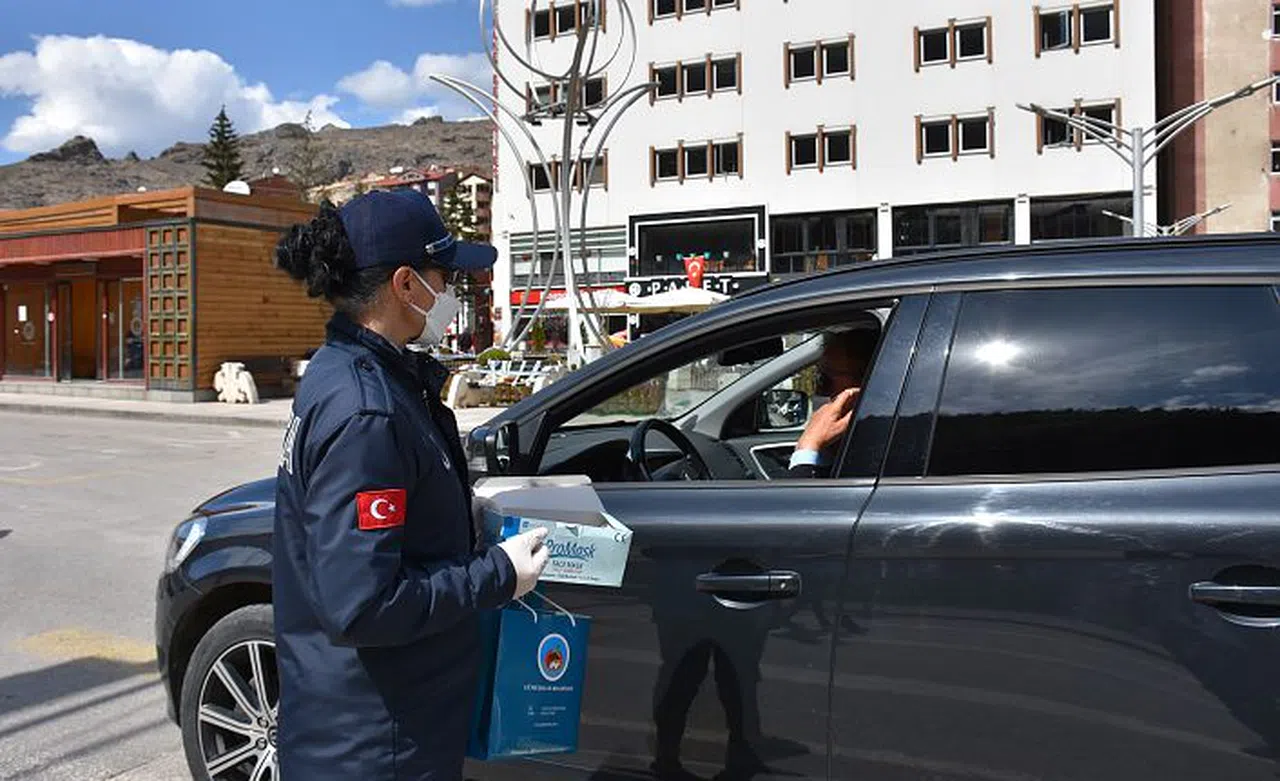 Gümüşhane Belediyesi, sivil ve toplu taşıma araçlarını kullanan, sokakta maskesi olmayan vatandaşlara Zabıta ekipleri aracılığıyla ücretsiz maske dağıttı.