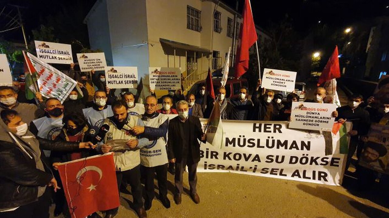 Gümüşhane’de sivil toplum kuruluşları İsrail'in Doğu Kudüs'te Filistinlilere yönelik saldırılarını düzenledikleri konvoy ve basın açıklamasıyla protesto etti.