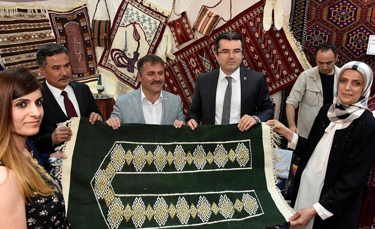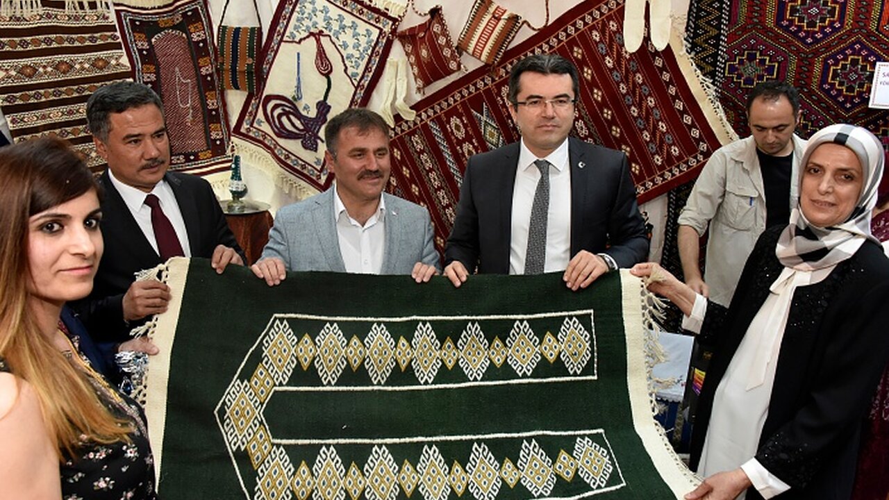 Daha sonra hizmet binası içerisindeki sergiyi gezen ve el emeği çok sayıda ürünü inceleyen Vali Memiş, bağlama kursuna katılan öğrencilerden birisinin bağlamasıyla da katılımcılara mini konser sundu.