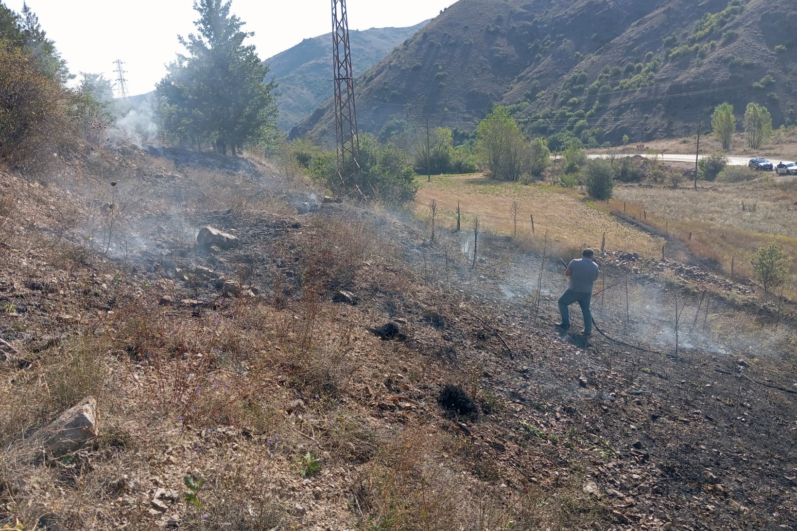 Otların kuru olması nedeniyle hızla büyüyen yangını ihbar ettikten sonra vidanjör aracında bulunan suyla söndürmeye başlayan ekip yaklaşık 20 dakikada yangını büyümeden söndürmeyi başardı.