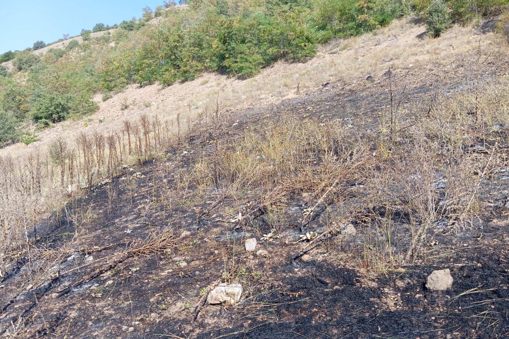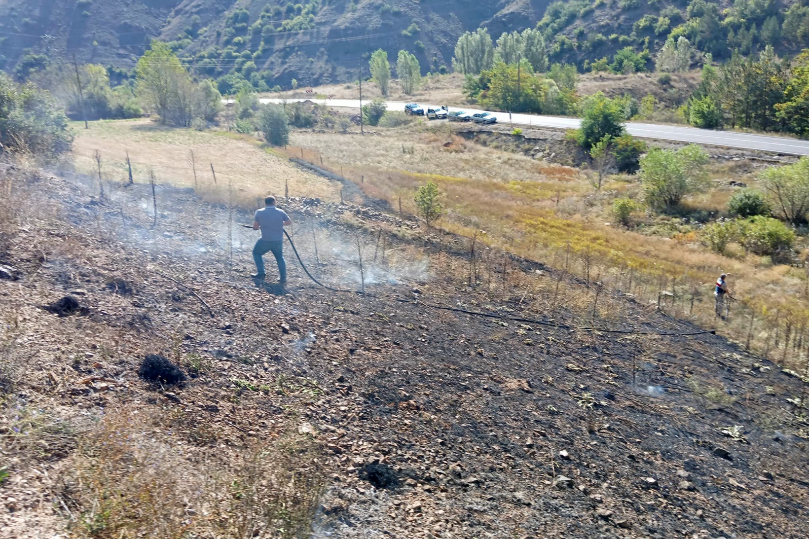 Jandarma ekiplerinin de katkı sağladığı ve çalılık, ağaçlık alana ulaşmadan Özel İdare ekipleri tarafından söndürülen yangında İtfaiye ekipleri soğutma çalışması yaptı.