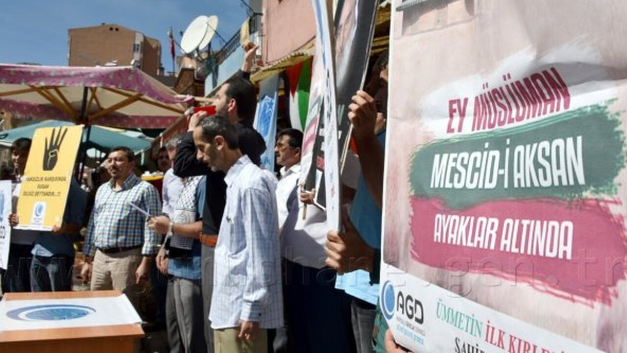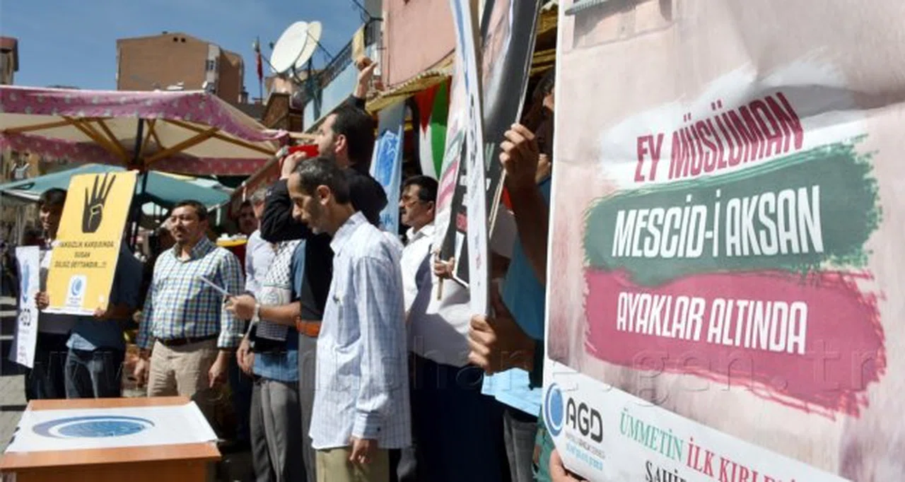 AGD Gümüşhane Şube Başkanı Naci Şenel, burada yaptığı açıklama terör devleti İsrail’in Müslümanlara yönelik saldırı ve kışkırtmalarına sitemli bir şekilde devam ettiğini belirterek, “Yahudi takviminde yılbaşı kabul edilen Roş Aşana bahanesiyle, beş gündür Mescid-i Aksa’ya yönelik yapılan işgal ve saldırılar, Filistin topraklarını Müslümanlardan arındırma politikalarının bir parçasıdır. Siyonist İsrail, her zaman olduğu gibi uluslararası anlaşmaları hiçe saymaktadır. Mescid-i Aksa bir İslam mabedidir. Buna rağmen terör devleti İsrail, Mescid-i Aksa’yı belirli zamanlarda Yahudilere tahsis etmek istemektedir” dedi.