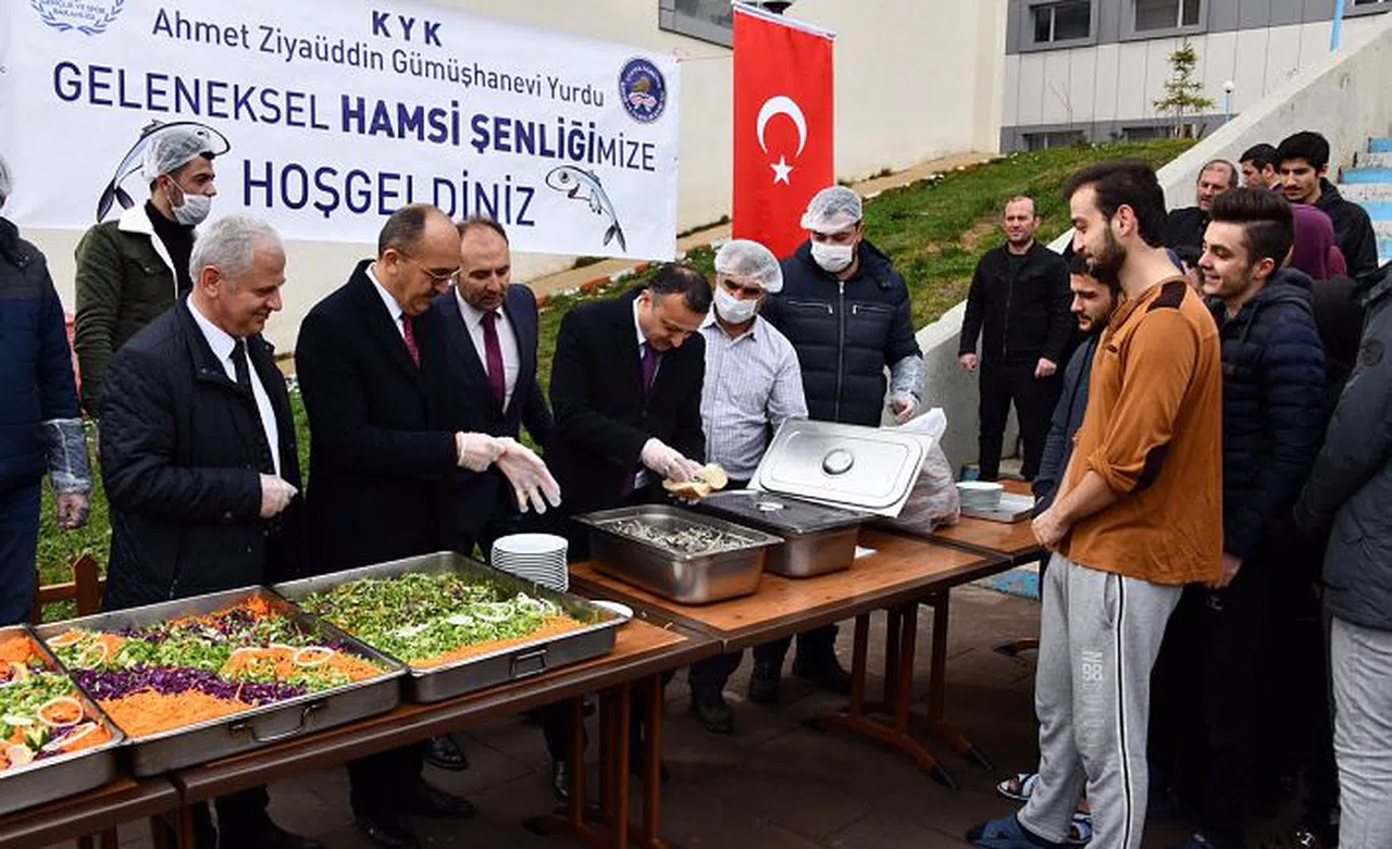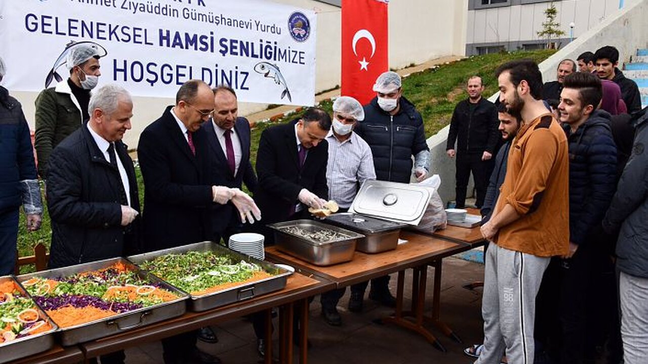 Kredi ve Yurtlar Kurumu (KYK) Gümüşhane İl Müdürlüğüne bağlı Ahmet Ziyaüddin Gümüşhanevi Yurdu tarafından geleneksel hale getirilen hamsi şenliğinin 3'üncüsü düzenlendi. Vali Kamuran Taşbilek, Belediye Başkanı Çimen ve Rektör Zeybek’in yanısıra yaklaşık 500 öğrencinin katıldığı hamsi şenliğinde 80 kilo hamsi mangal ateşinde pişirilerek öğrencilere dağıtıldı.