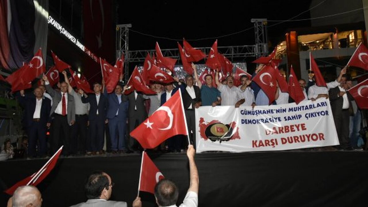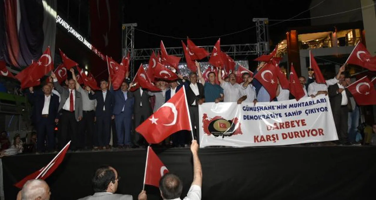 Saygı duruşunda bulunulması, İstiklal Marşı’nın okunması, Kur’an-ı Kerim tilaveti ve dua ile başlayan programda Gümüşhane Köy ve Mahalle Muhtarları Derneğini tarafından hazırlamış olduğu sinevizyon gösterisinin ardından muhtarlar “Gümüşhane Muhtarları Demokrasiye Sahip Çıkıyor, Darbeye Karşı Duruyor” yazılı pankartla kürsüye çıkarak darbe girişimine tepki gösterdi.