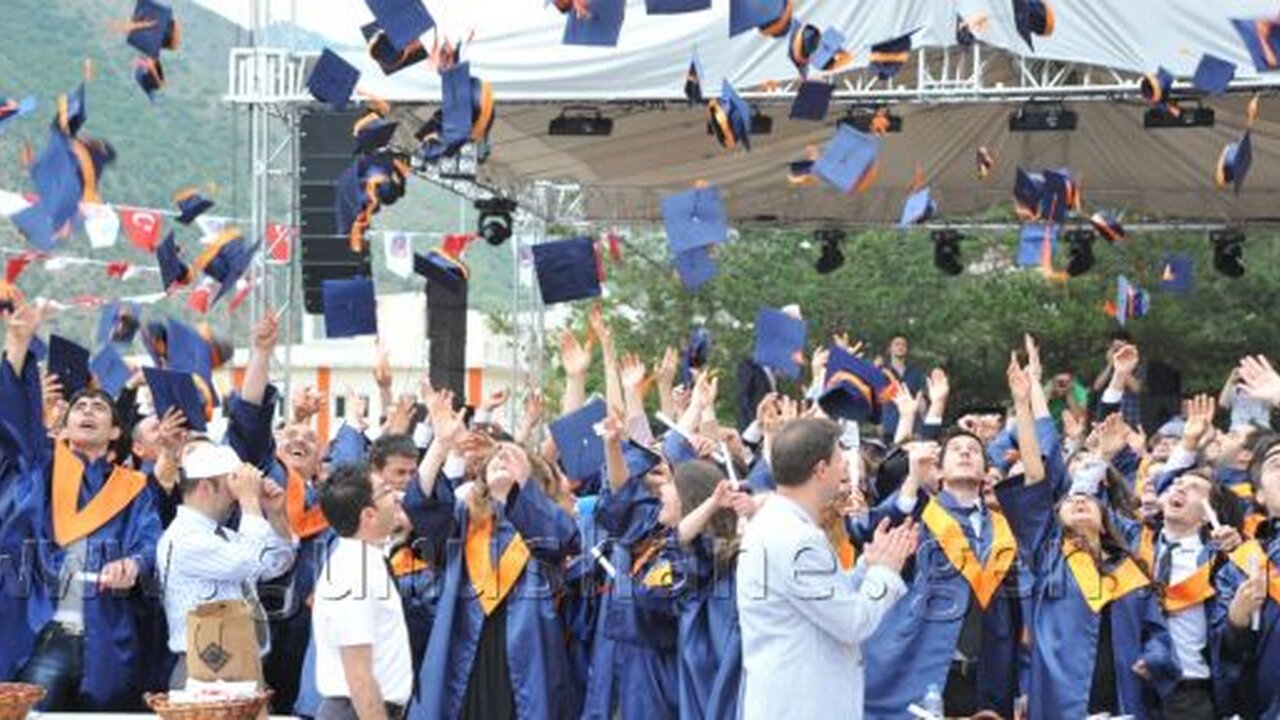 Tören, öğrencilerin diploma yemini ederek keplerini havaya atmasıyla sona erdi.