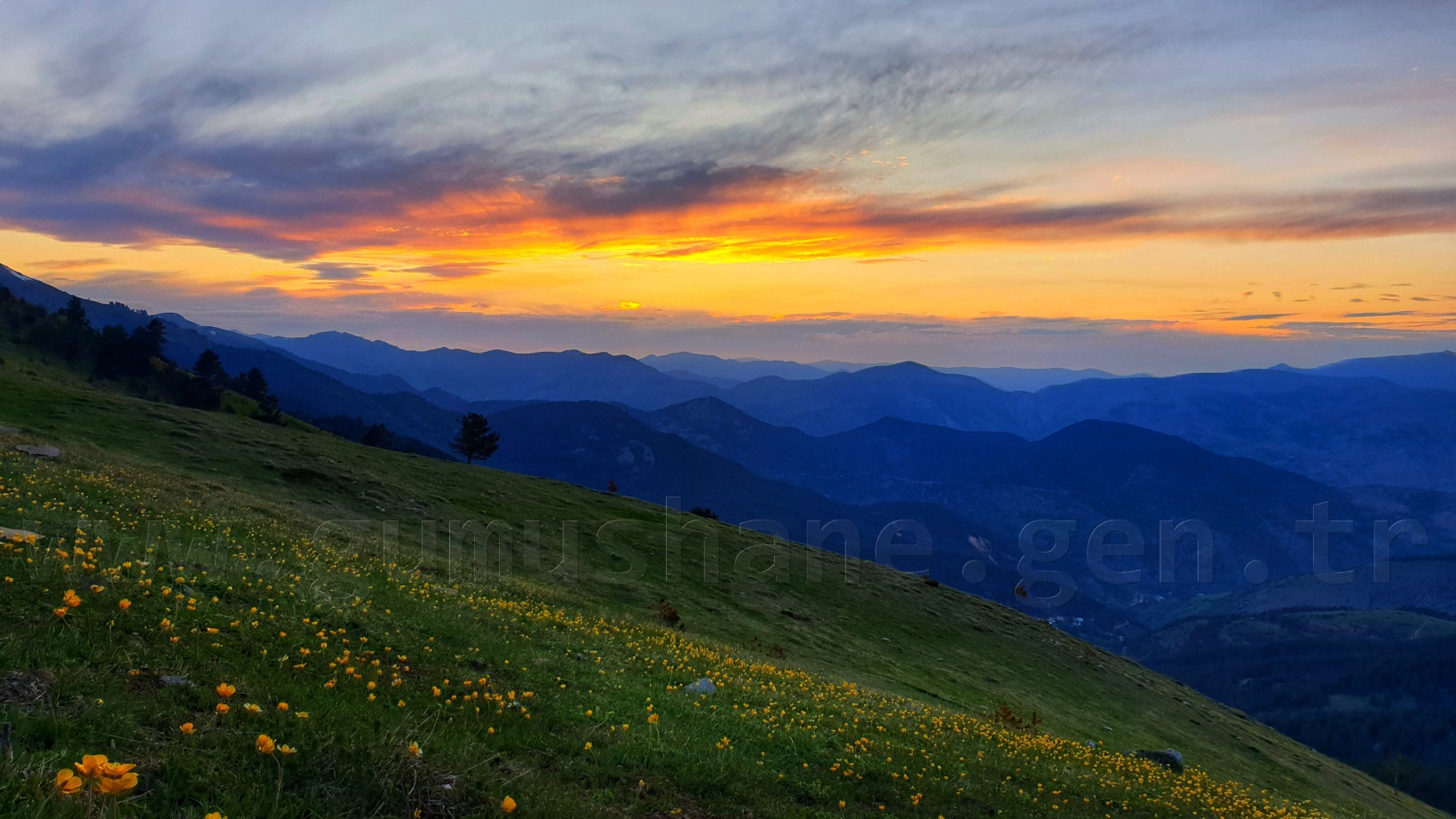 Özellikle gün batımlarında yüksek zirvelerden eşsiz manzaralar sunan Gümüşhane yaylaları hem orada yaşayanlara hem de ziyaretçilerine mutluluk aşılıyor.