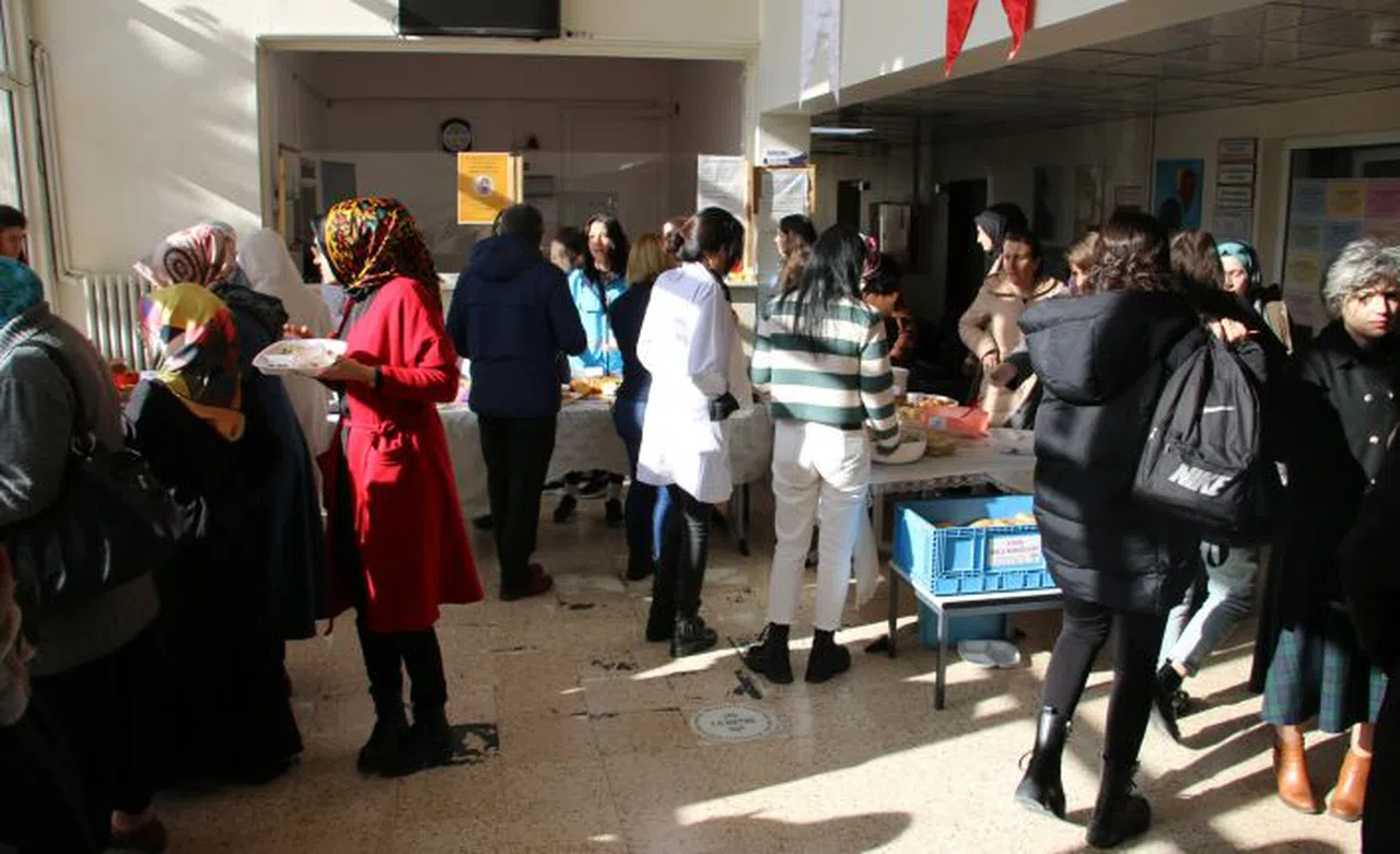 Gün boyunca devam eden ve yurt idaresi tarafından planlanan kermese güvenlik personeli, temizlik personeli, iklimlendirme personeli ve lokanta-kantin işletmesi çalışanları olmak üzere toplam 60 kişi 120 çeşit yiyecek içecekle katkıda bulundu.