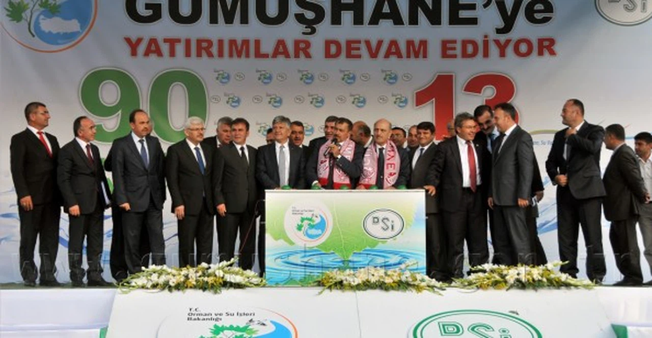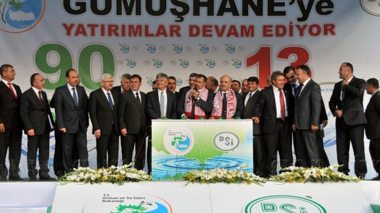 Çevre ve Şehircilik Bakanı Erdoğan Bayraktar ve Orman ve Su İşleri Bakanı Prof.Dr. Veysel Eroğlu, Orman ve Su İşleri Bakanlığı'nın 90 milyon lira tutarındaki 13 tesisinin toplu temel atma töreni için Gümüşhane’ye geldi.