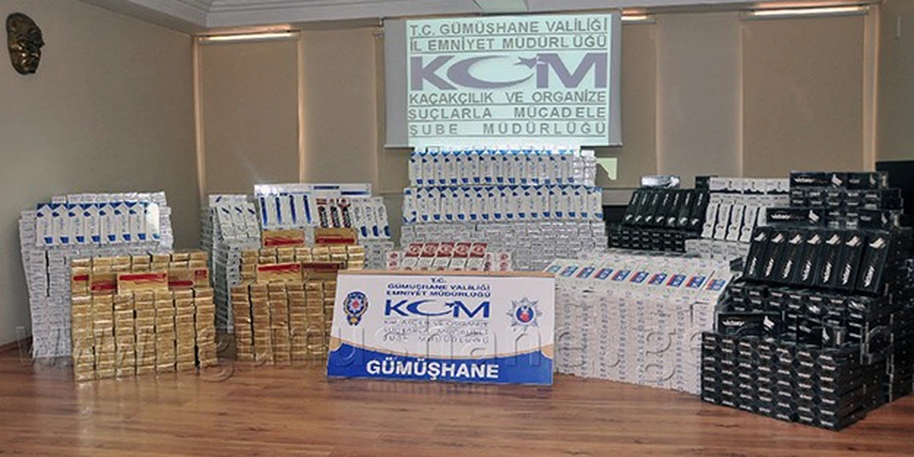 Gümüşhane Emniyet Müdürlüğüne bağlı Kaçakçılık ve Organize Suçlarla Mücadele Şube Müdürlüğü (KOM) ekipleri, yaptıkları operasyonda 16 bin paket gümrük kaçağı sigara ele geçirdi.