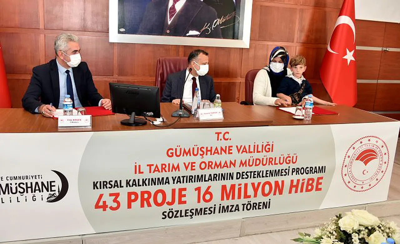 Vali Kamuran Taşbilek törende yaptığı konuşmada 2005 yılında başlayan ve bu yıl 14.etabı düzenlenen Kırsal Kalkınma Yatırımlarının Desteklenmesi Programı çerçevesinde 2005’ten 2020 yılına kadar Gümüşhane’de toplam 99 projeye Tarım ve Orman Bakanlığınca 19 milyon 230 bin TL hibe desteği verildiğini hatırlatarak, “Bu yıl siz değerli girişimcilerimizin yoğun çalışmaları, ekip arkadaşlarımızın gayretli çalışmaları ve Tarım ve Orman Bakanımızın ilimize gösterdiği teveccühle 2021 yılı 14.etap Kırsal Kalkınma Yatırımlarının Desteklenmesi Programı çerçevesinde toplam 43 projeye 15 milyon 650 bin 742 lira hibe desteği verildi. Cumhurbaşkanımız, Tarım ve Orman Bakanımız, Bakanlığımızın bürokrat ve çalışanlarına, ilimizde emek veren Tarım teşkilatımıza, siz değerli girişimcilerimize gösterdiğiniz ilgiden dolayı teşekkür ediyorum. Devletimizin verdiği 15,6 milyon karşılığında sizlerin de aynı tutardaki karşılığıyla çok büyük bir katma değer oluşturulacağına, Gümüşhane’nin tarımsal altyapısının çok ciddi manada destekleneceğine inancımız tamdır. Hayırlı olsun” dedi.